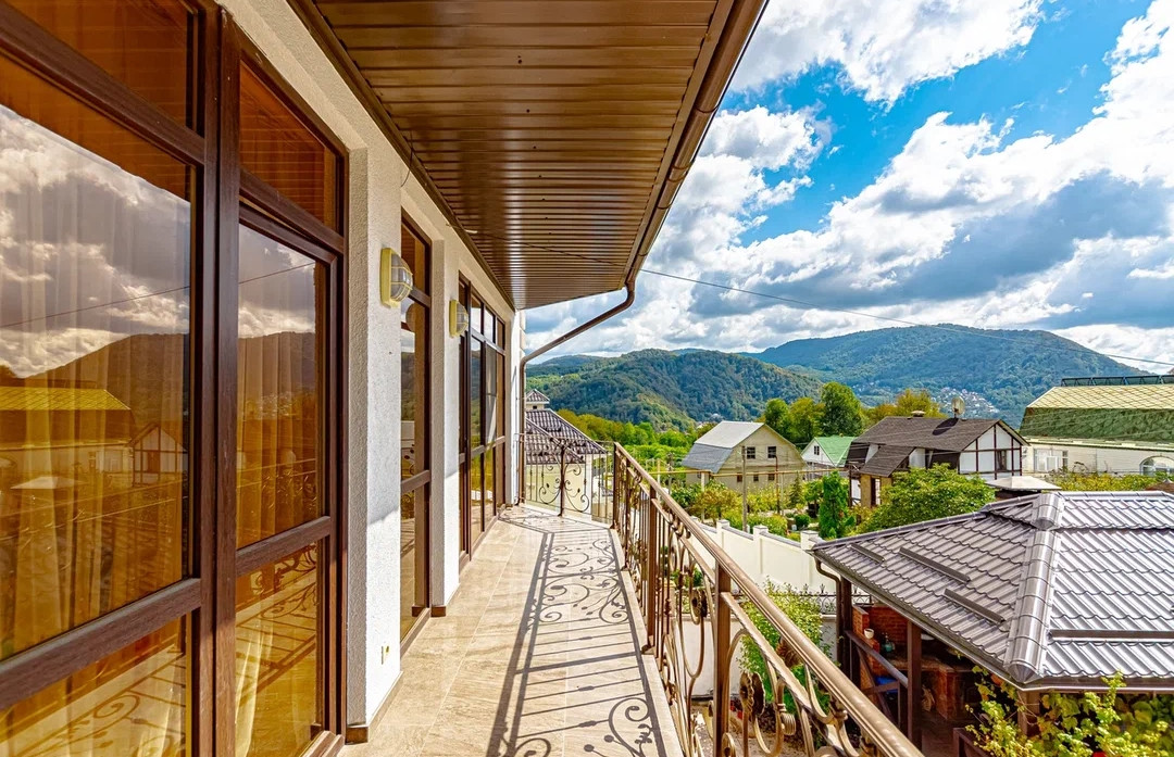 - 2 санузла, 2 ванные комнаты, гардеробная, подвальное помещение, котельная, мансарда свободной планировки и балконы с красивым видом на горы и лес