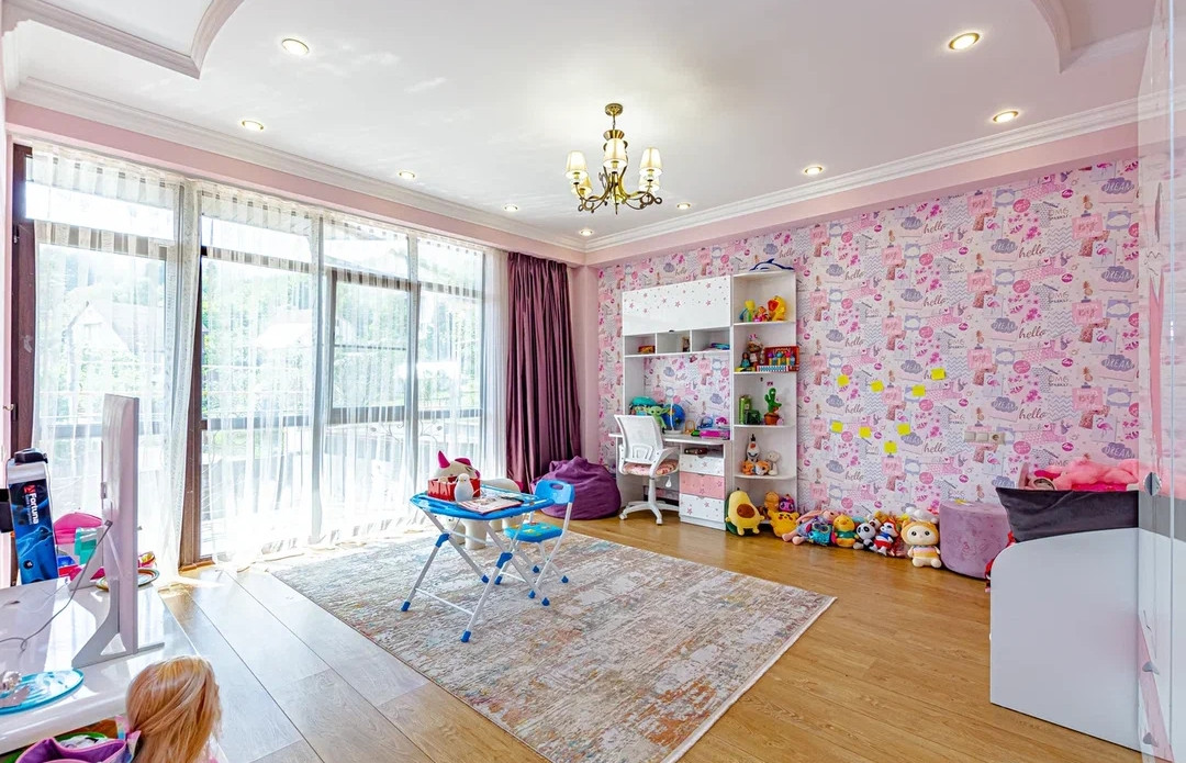 - в доме 4 спальни, кухонная зона с выходом на террасу, просторный зал, кабинет