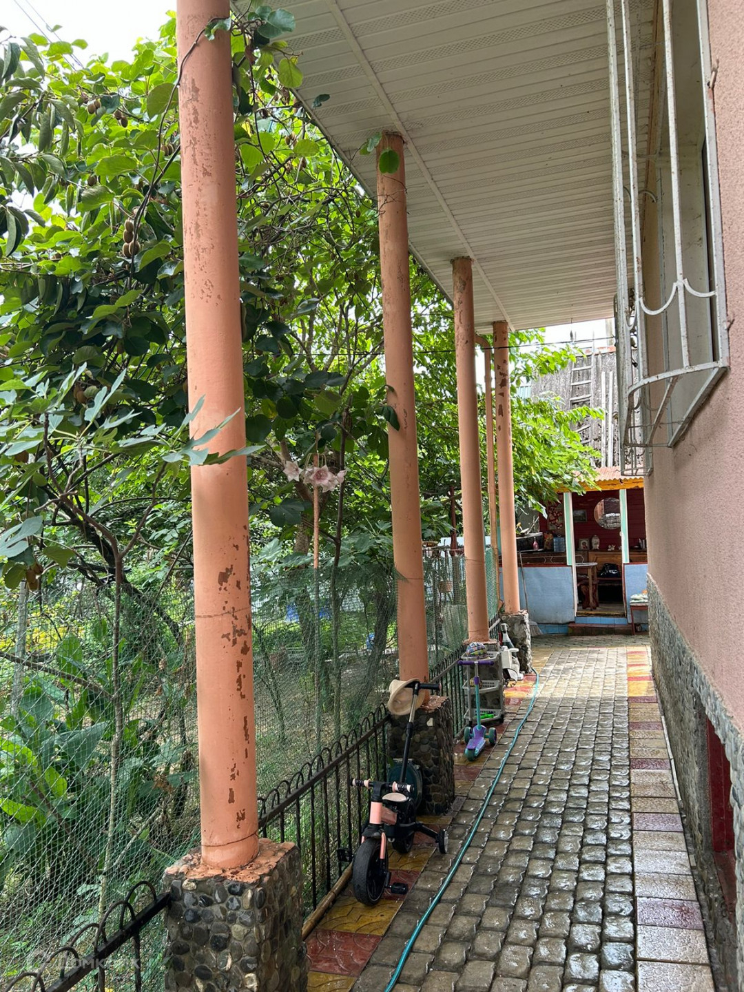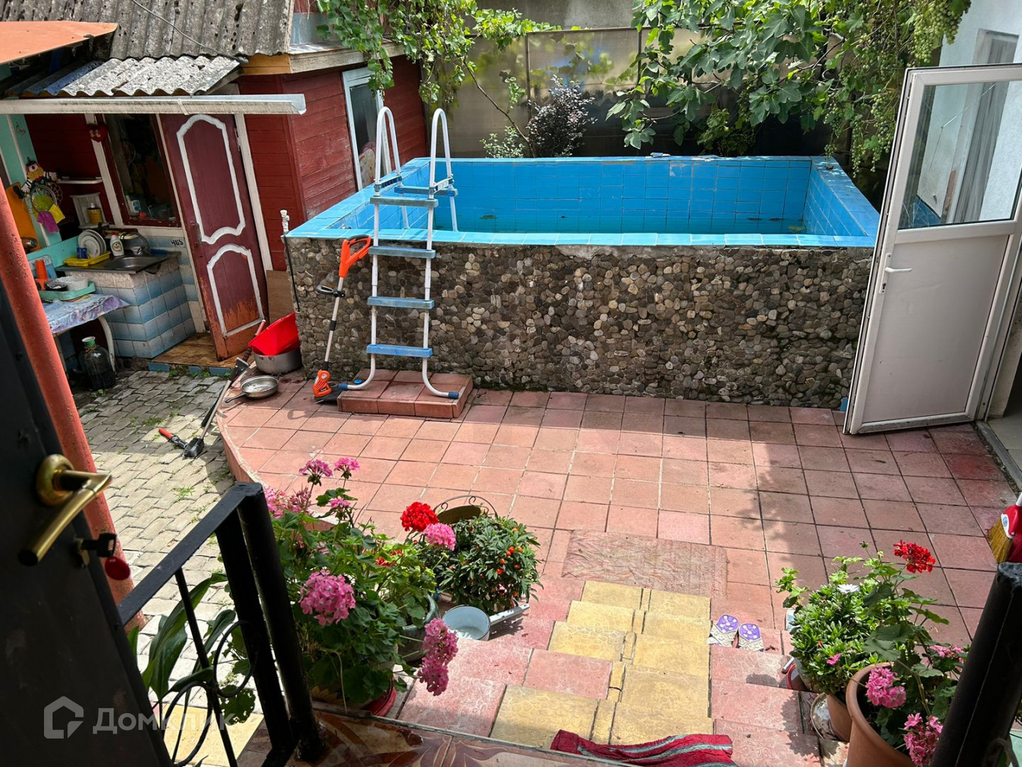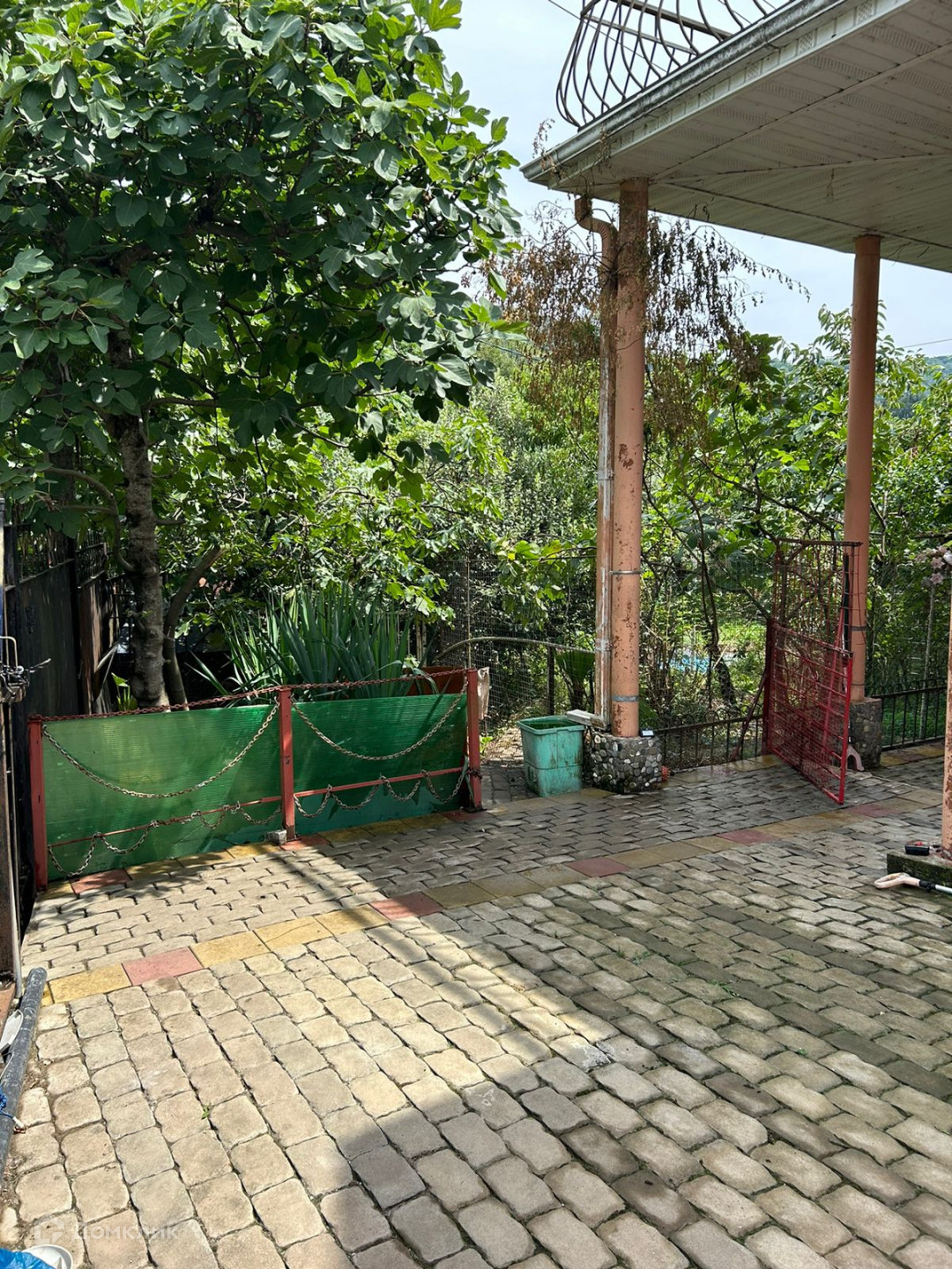 На территории фруктовый сад (фейхоа, алыча, инжир, киви, яблоня, виноград и др), бассейн, баня, летняя кухня, гараж. Дом 2 этажный, с большим подвальным помещением. 1 этаж - 4комнаты+ кухня и санузел, на 2 этаже - мансарда свободной планировки с террасой и балконом.  Во дворе брусчатка.