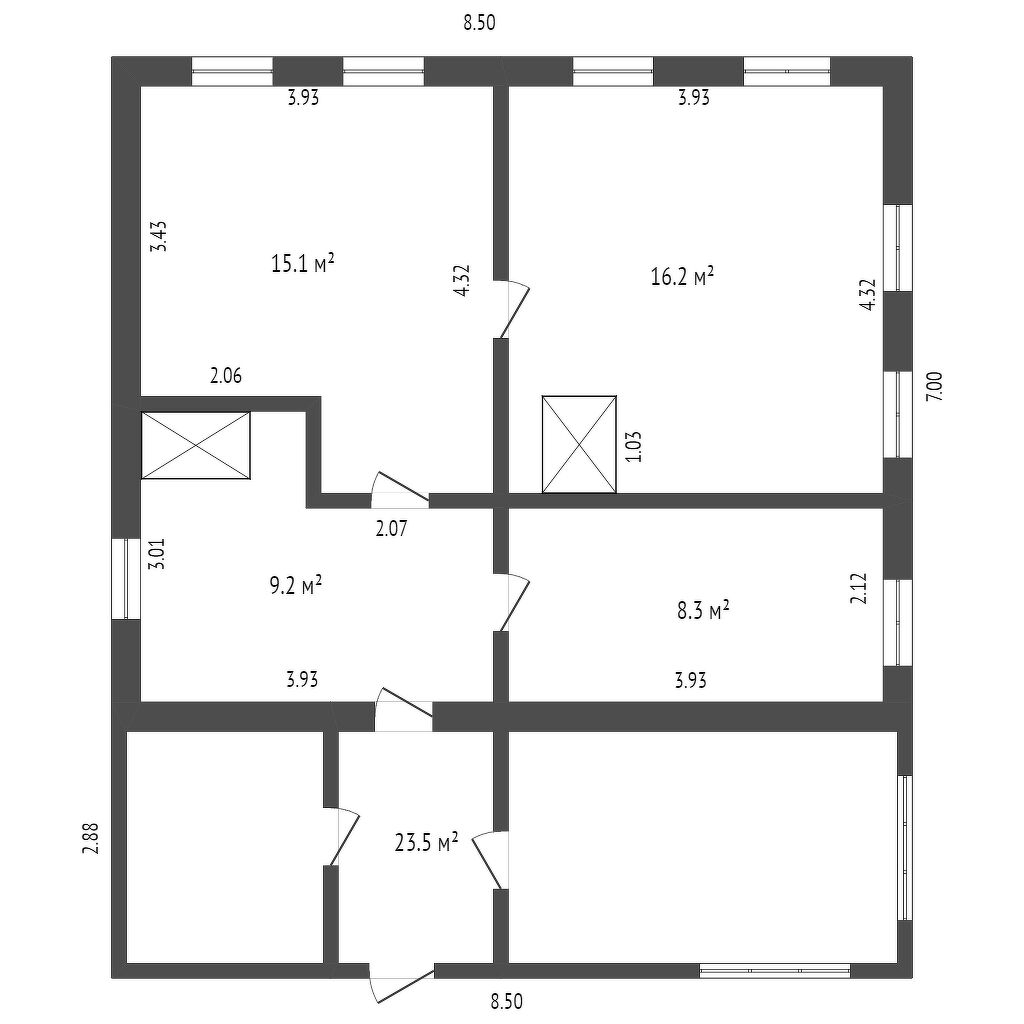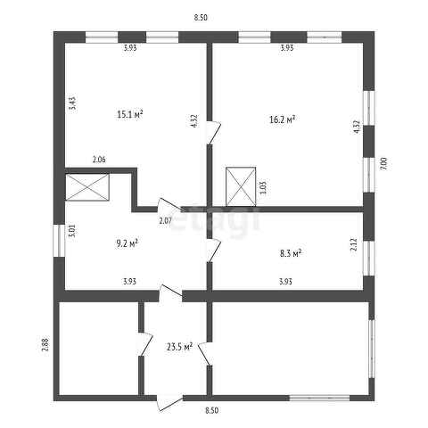 Общая площадь 48.8 м2