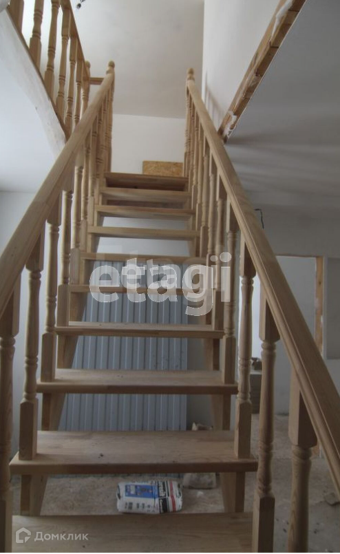 Между 1 и 2 этажами установлена деревянная удобная и красивая лестница с ограждением по 2-ому этажу.