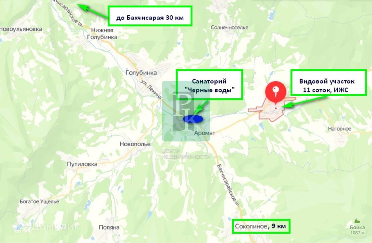 Ближайшая школа и садик находятся в соседнем селе Голубинка – расстояние 6 км. До г. Бахчисарай - 30 км., до г.Севастополь - 55 км.