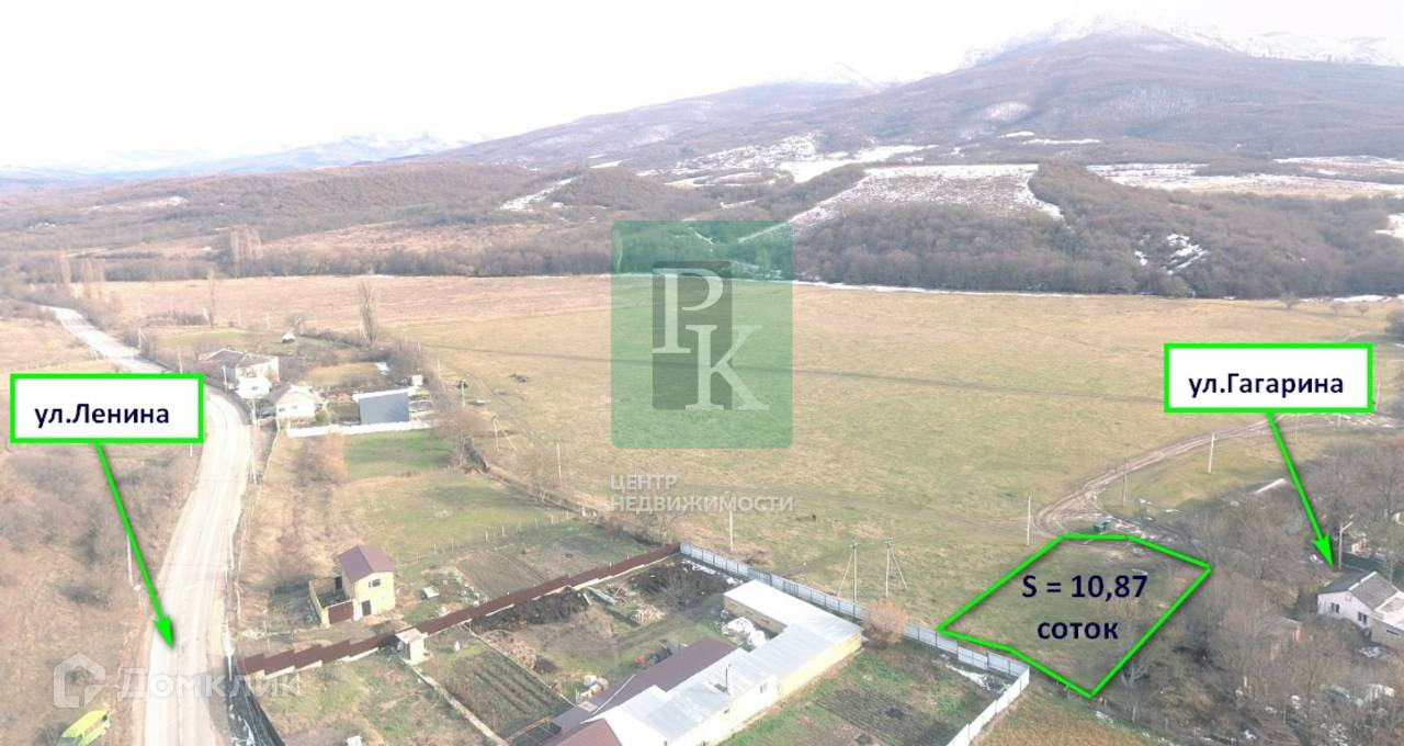 Участок 10,87 соток (ИЖС) в Республике Крым, Бахчисарайский район, с. Плотинное, улица Гагарина. Участок видовой, ровный, с соотношением сторон 56м*16м*53м*24м. Подъезд грунтовка.
