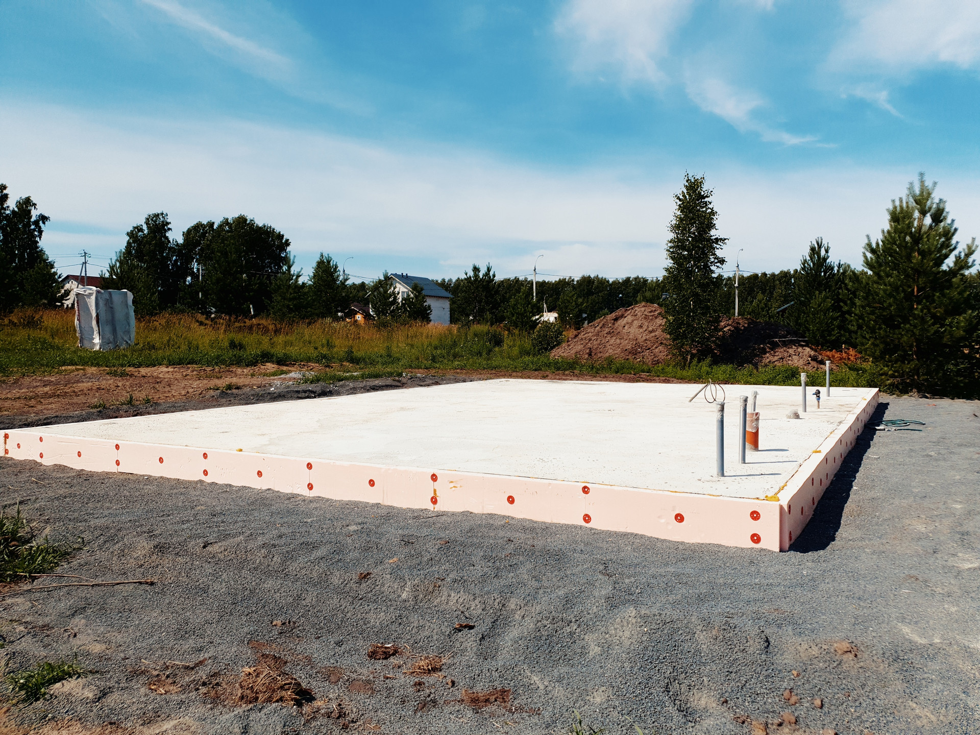 Фундамент УШП плита, стены СИБИТ 300, внутренние стены СИБИТ 100.