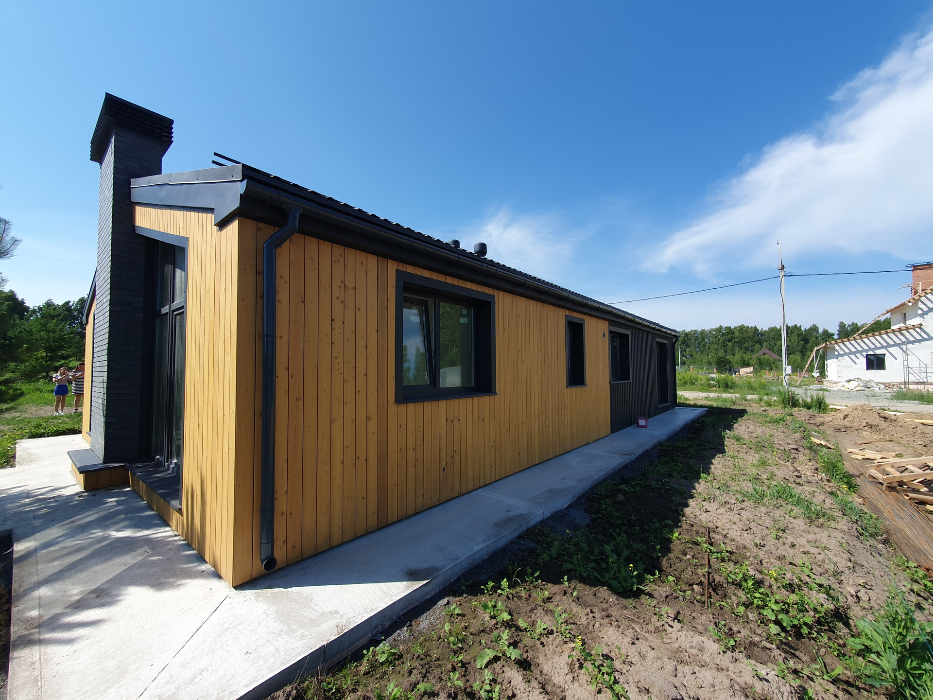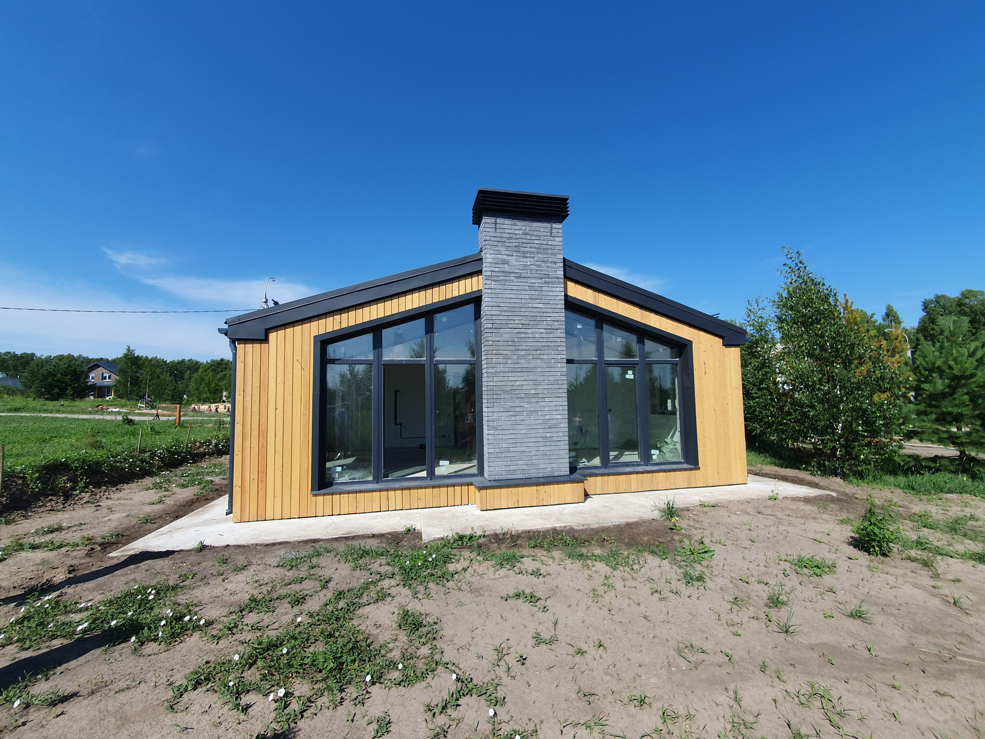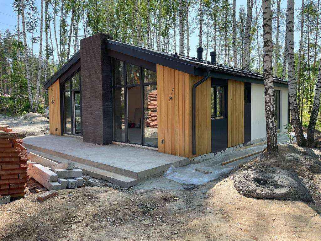 Готовый дом, две спальни, шикарная кухня гостиная, камин, панорамные окна, терраса.