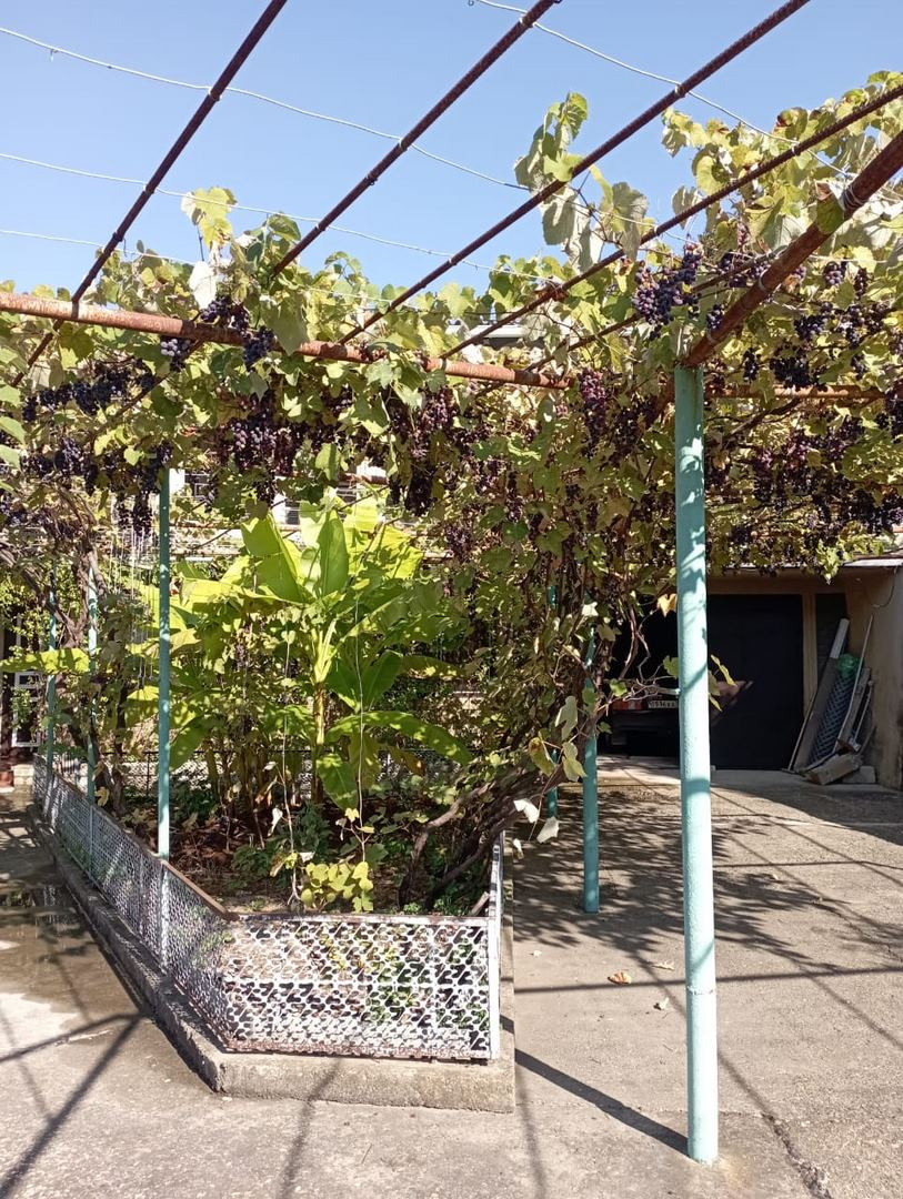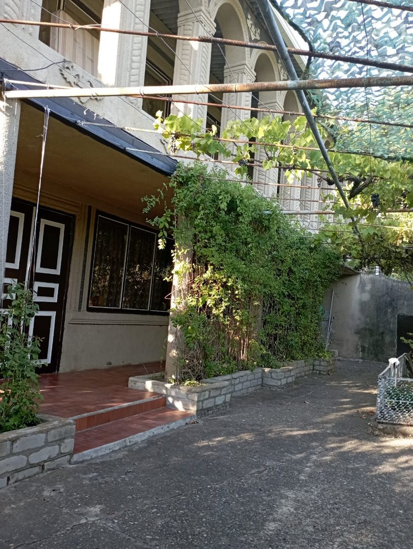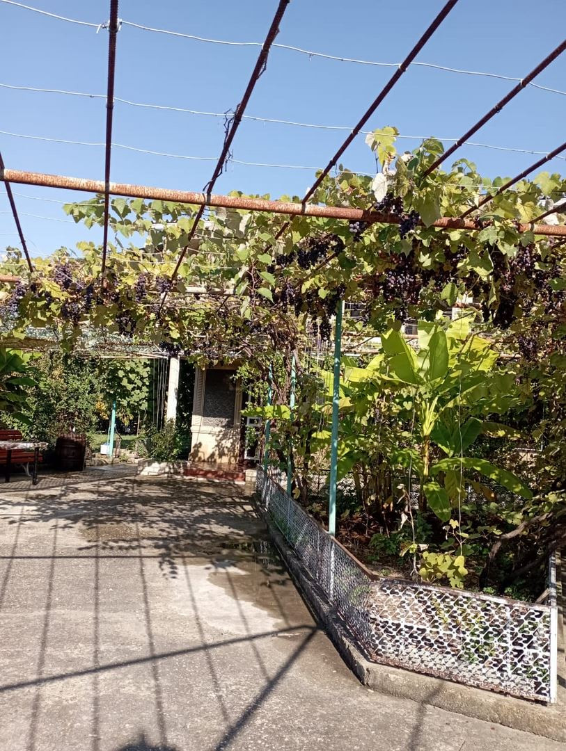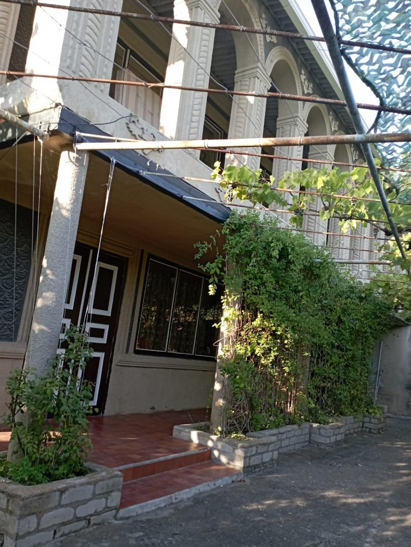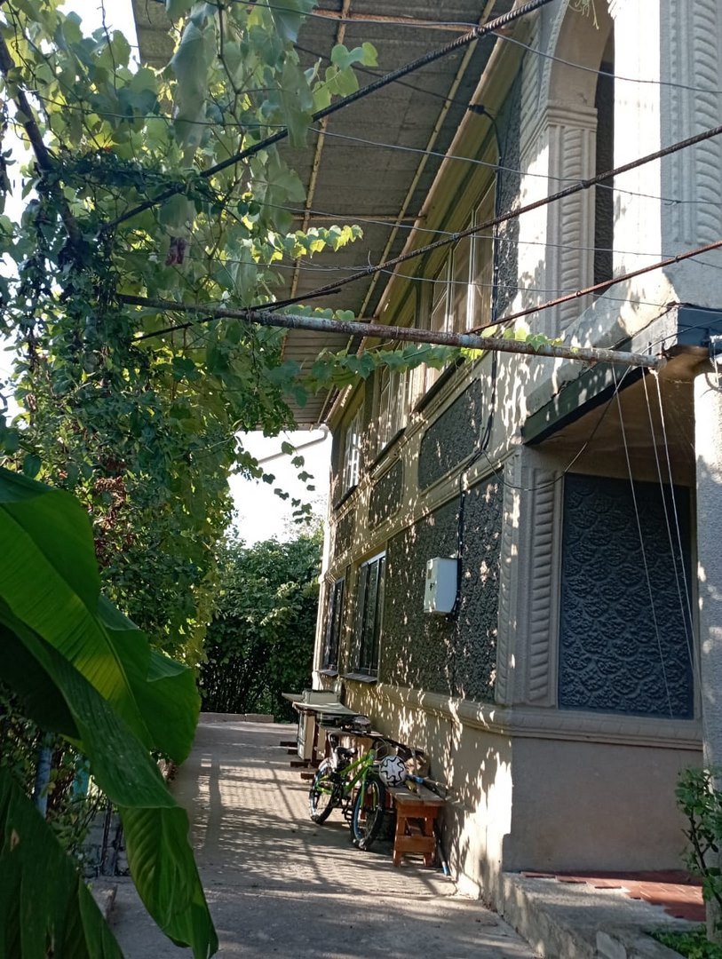 Участок огорожен с выделенным собственным удобным заездом. Позади дома сад с посаженными плодовыми деревьями (яблоня, вишня, орех, груша, хурма, персик и др.), разбиты клумбы. Там же расположены подсобные помещения. Хороший подъезд. Железные ворота во двор и в гараж, в гараже смотровая яма 4м x 7м.