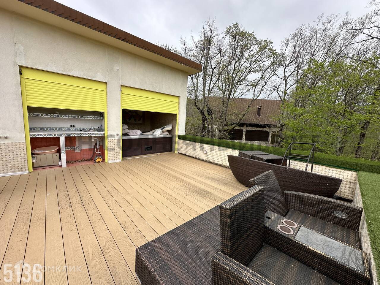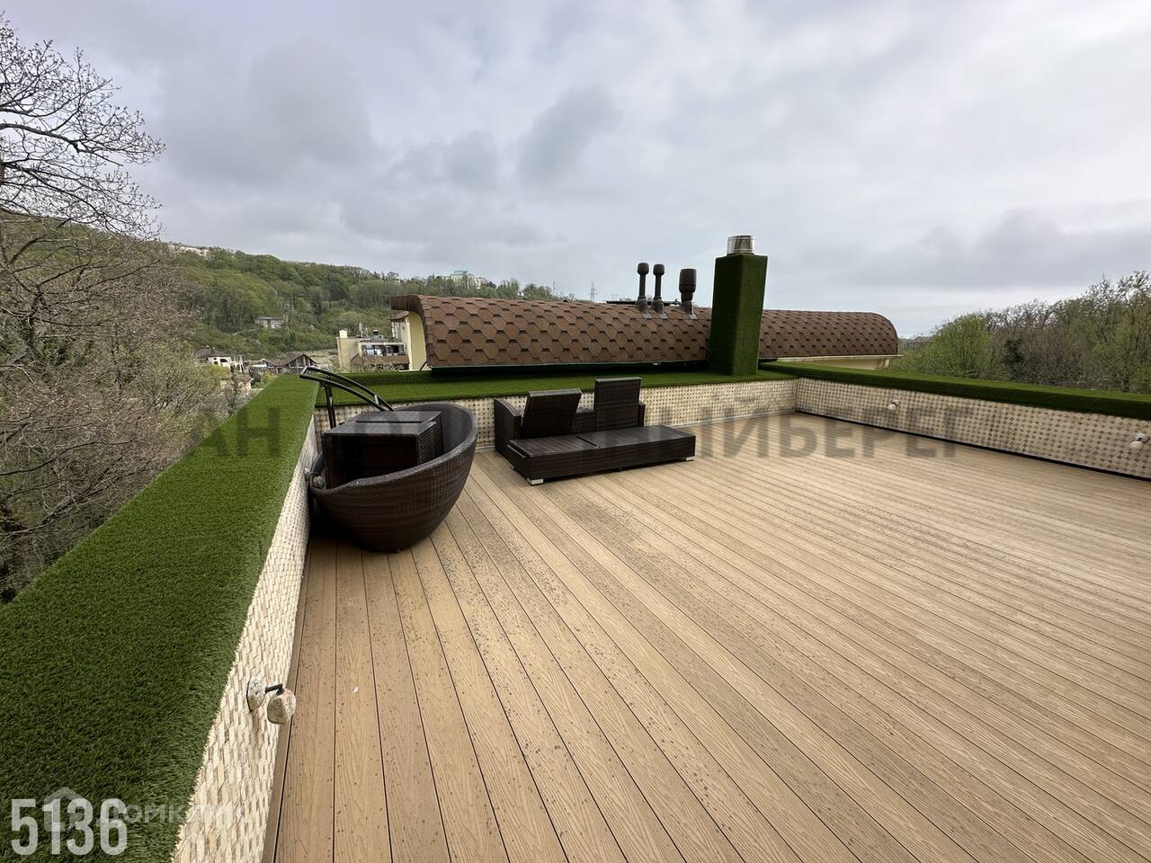 3 этаж- подсобное помещение, эксплуатируемая кровля для зоны отдыха, летняя кухня, комната свободного назначения(на данный момент стоит большая джакузи).