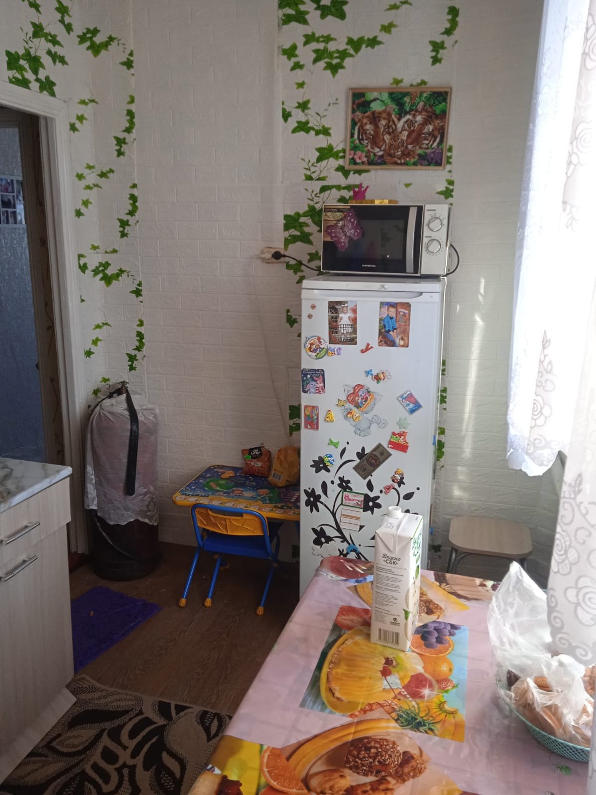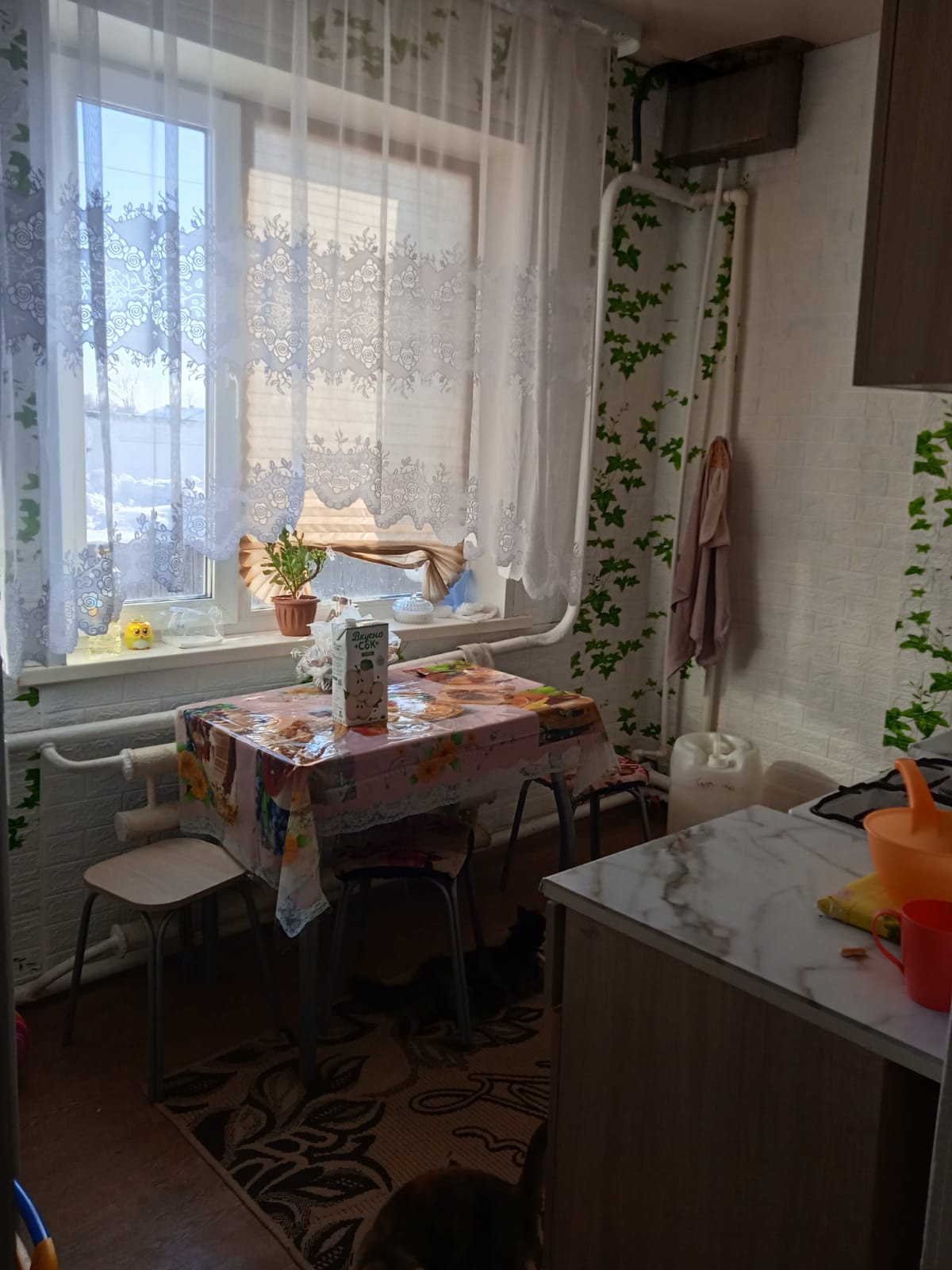 Продается квартира в доме на два хозяина в селе Победитель (около 40 км. до р.п. Кормиловка) по ул. Мира (центр села). Дом 1992 года постройки, теплый, светлый, снаружи обложен кирпичом. Печное водяное отопление (частично заменены трубы и радиаторы отопления), канализация (выгребная яма), вода в дом не заведена, на участке имеется колодец. Окна ПВХ. В доме 3 комнаты, кухня. Сделан косметический ремонт, натяжные потолки. Мебель частично остается новым жильцам. Санузел совмещенный, сантехника в нормальном рабочем состоянии. Большой двор, есть банька, большой гараж, хоз. постройки для содержания скота и птицы. Участок ухожен, есть плодово-ягодные насаждения. Село очень развитое. Все в шаговой доступности: остановка общественного транспорта (газели до райцентра Кормиловки ходят, ехать минут 30-40); школа, дет. садик, ФАП, Дом Культуры, библиотека, отделение Сбербанка, почта, колбасный цех.