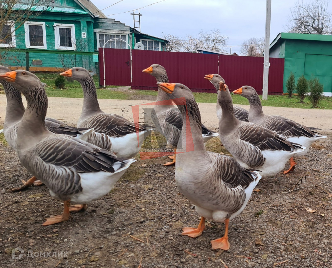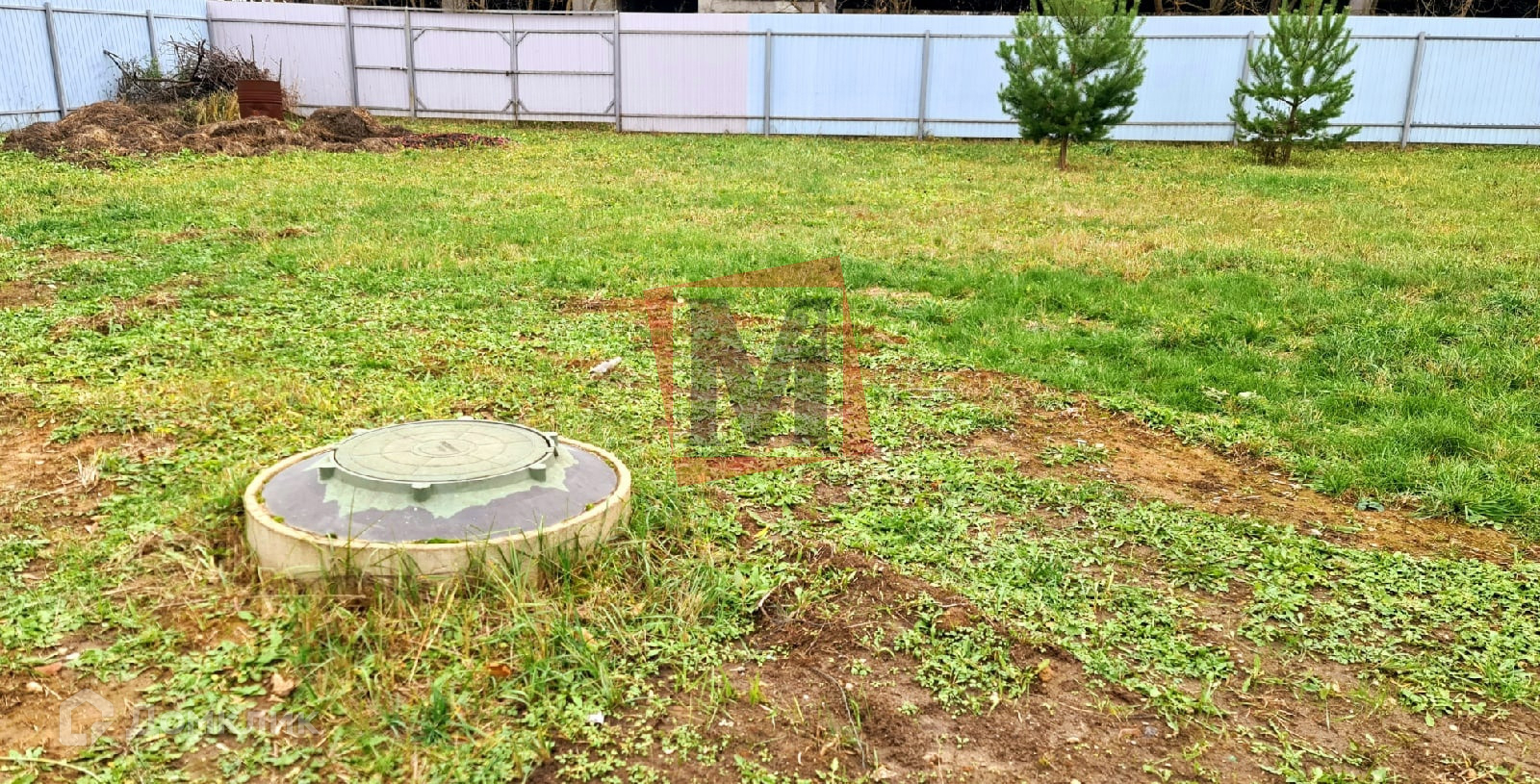 Участок ровный правильной формы, есть организованная  площадка для нескольких авто. Два въезда с железными воротами и калиткой. На участке стоит контейнер под хоз инвентарь, засеян газон, имеются плодоносящие яблони, молодые сосны и ели.