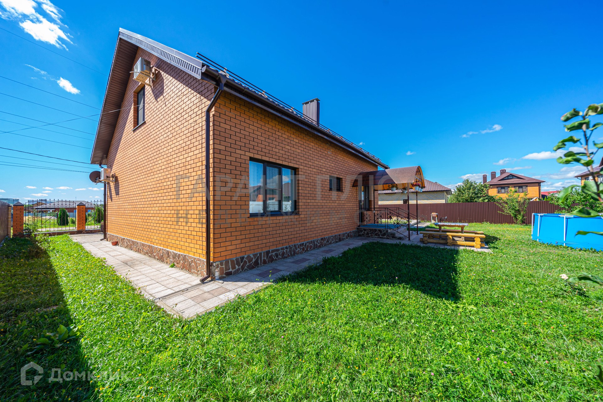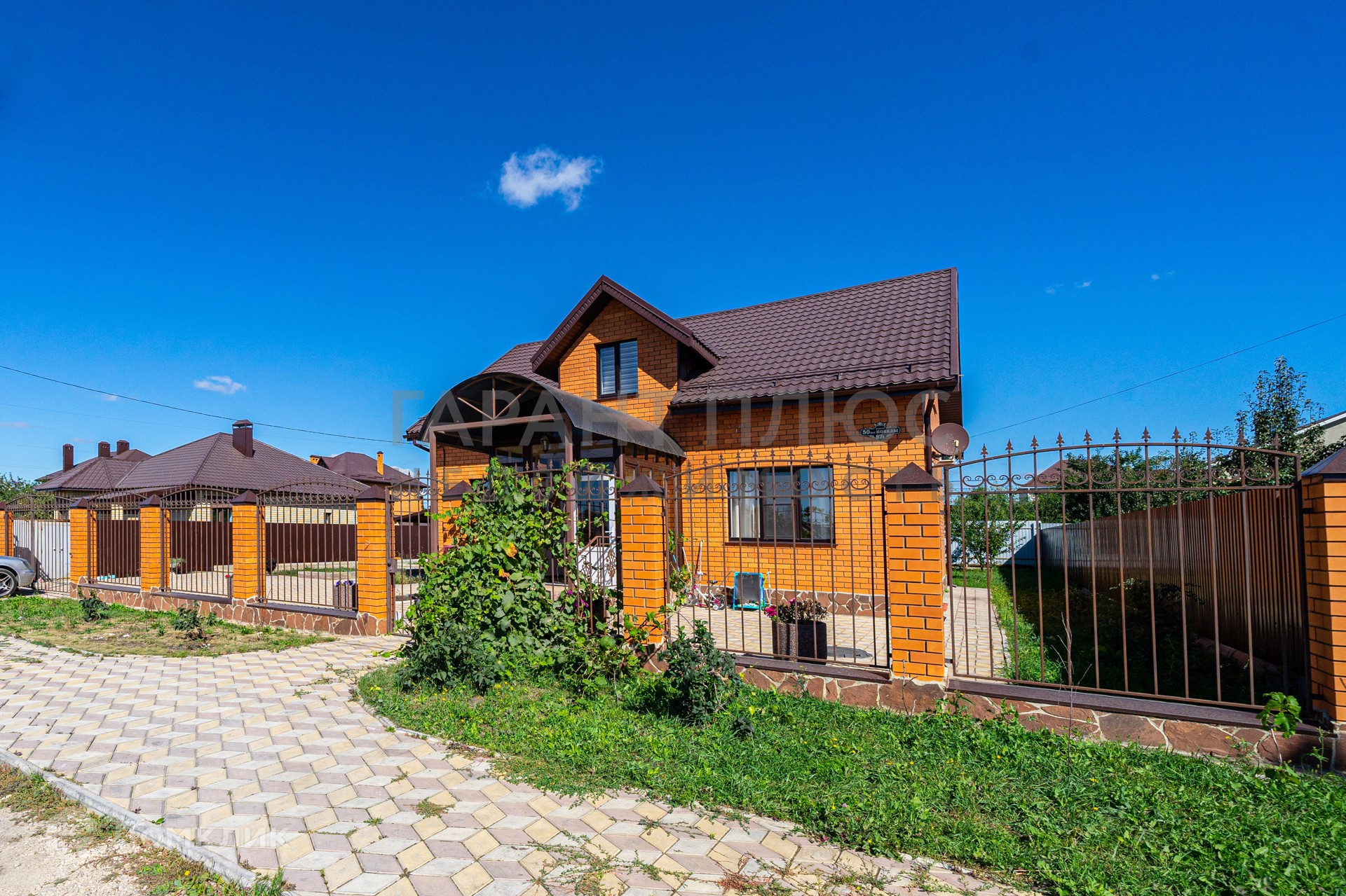 Стены: газосиликат 300 мм+облицовочный кирпич. Фундамент: свайно-ленточный. На участке есть фундамент под гараж/баню/беседку. Территория огорожена и благоустроенна, молодой сад, асфальтированный подъезд.