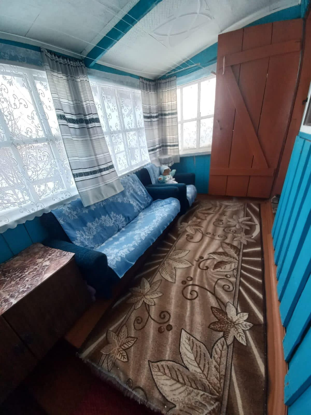Дом обшит пиломатериалом, окна пластиковые, крыша покрыта железом. Во дворе есть баня и дровенник.