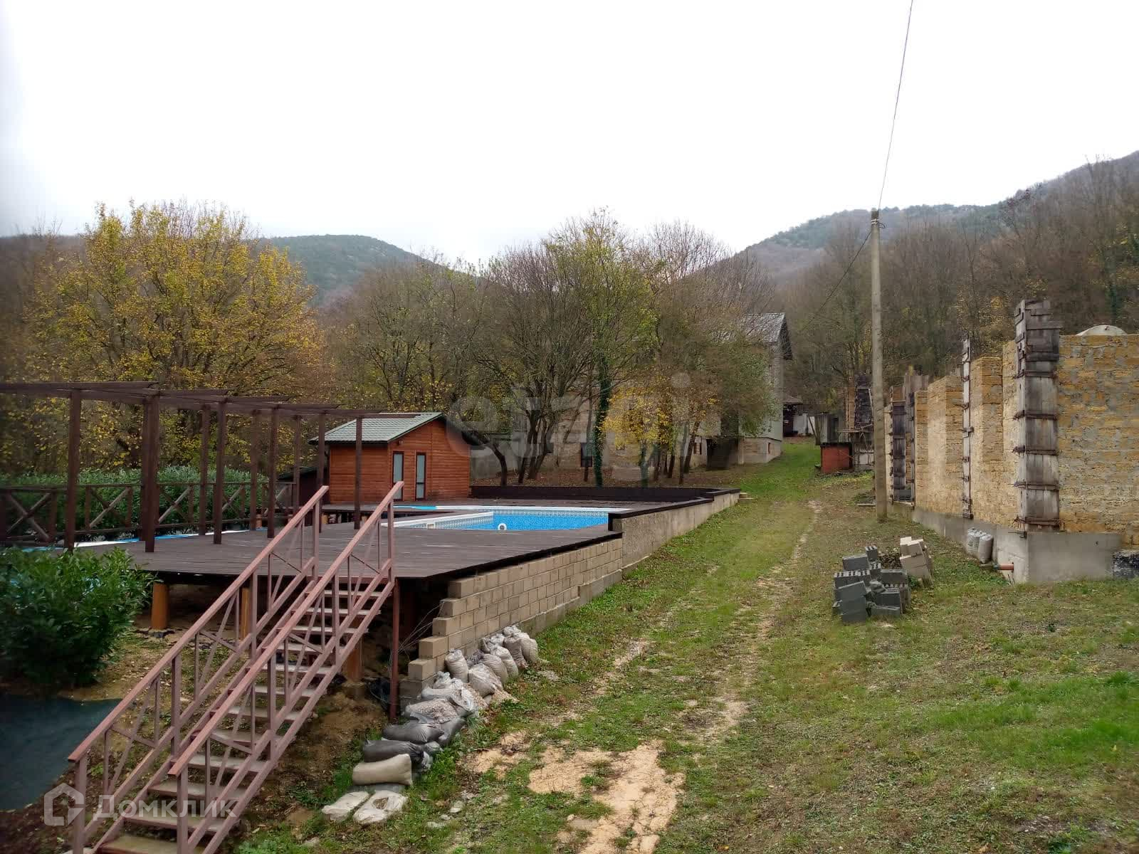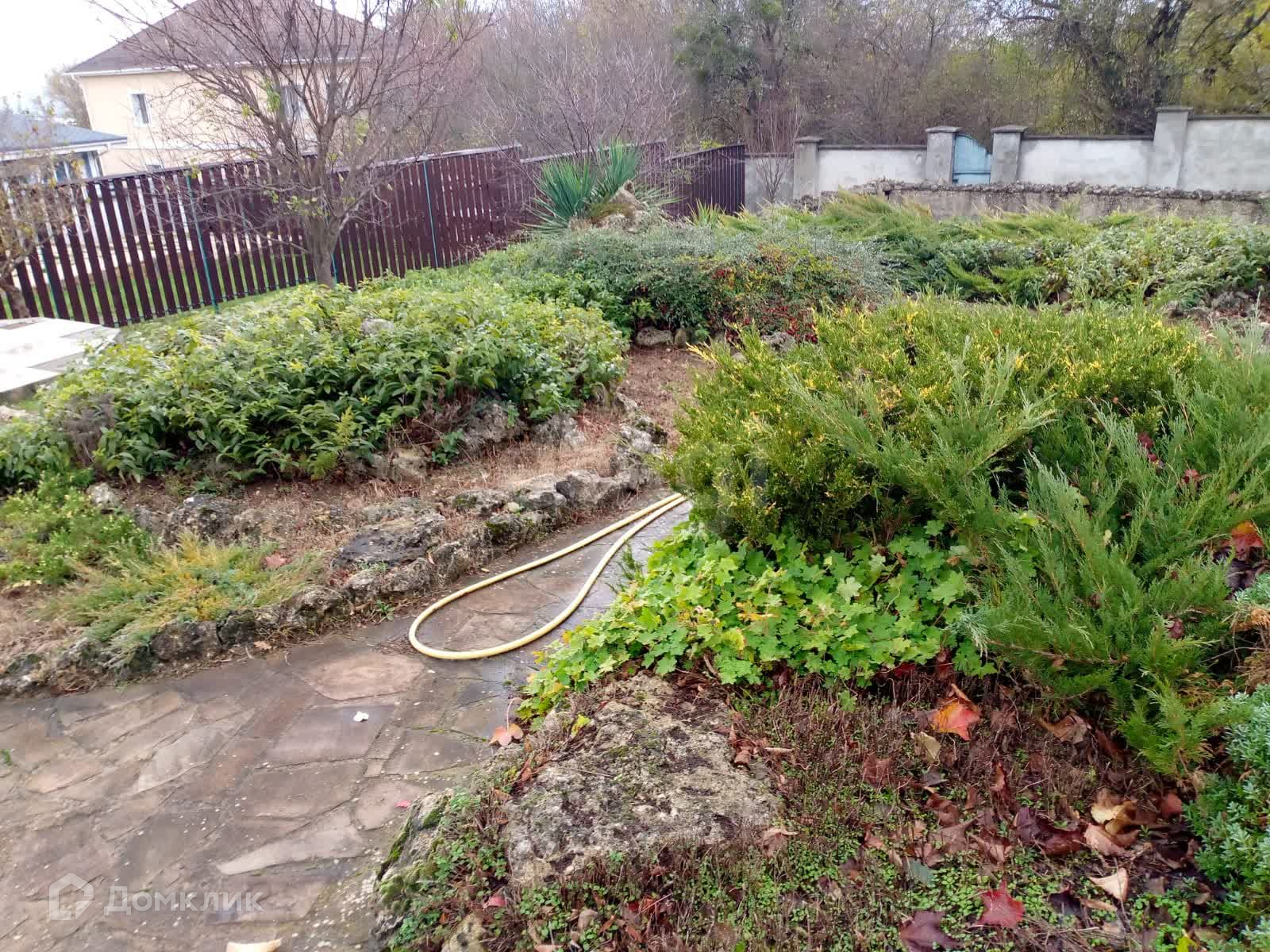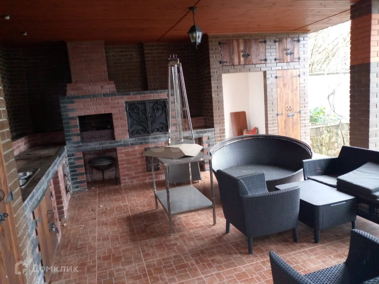 Территория участка озеленена и благоустроена: внутренний двор украшен зоной для пикников и отдыха, а также большим открытым бассейном. На участке имеется пруд с живой рыбой.