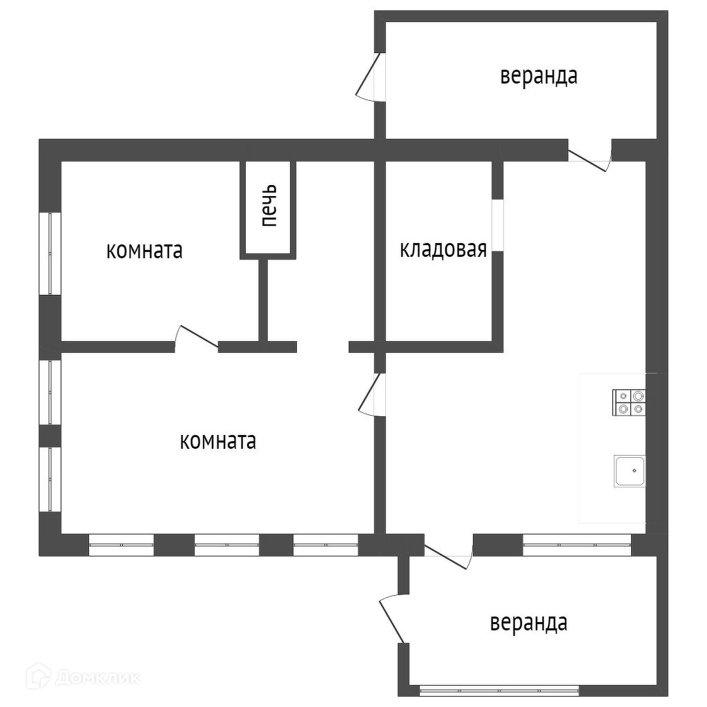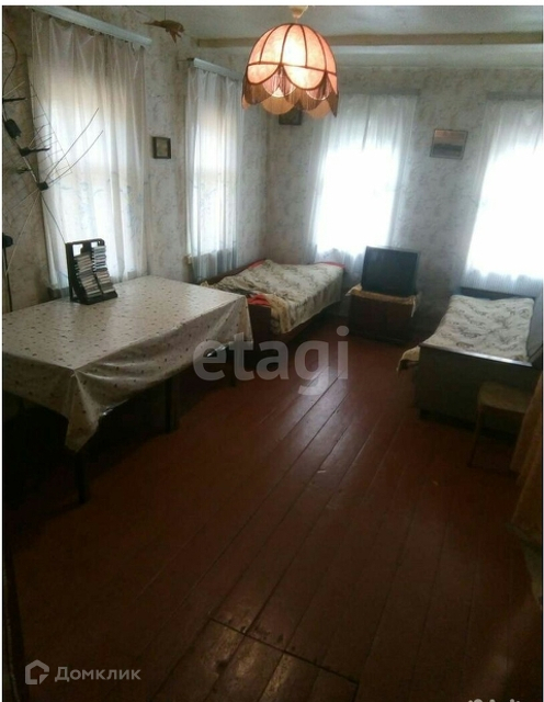 Продается бревенчатый дом на земельном участке 15 соток. Две жилые комнаты, кухня, кладовка. Дом очень светлый - большое количество окон, в хорошем жилом состоянии. Электричество в доме, газ проходит по территории, отопление печное, вода - скважина заведена в дом.