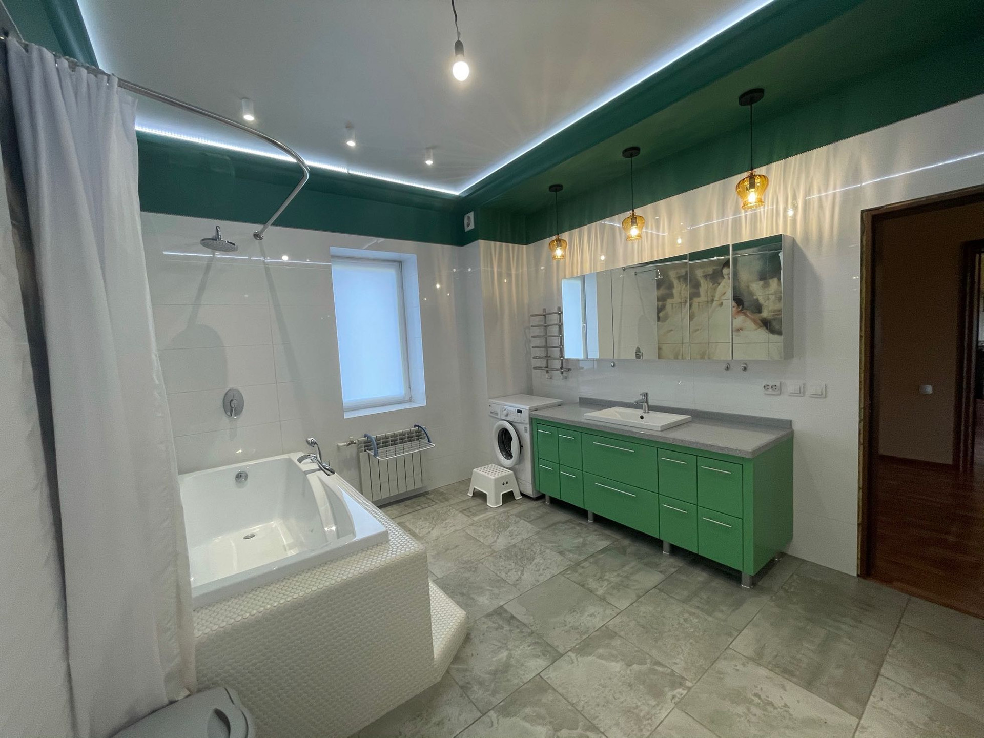 Водопровод центральный, Котел Vaillant, септик 10 кубов. Теплый пол в ванной комнате и в прихожей + радиаторы отопления.