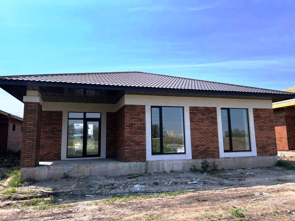 Качественные строительные материалы: керамзитоблок (евроформат 30*40 см), утеплитель 10 см, облицовочный кирпич 7 см баварская кладка. Утеплитель стен (каменная вата технониколь 10 см), переложен кладочной сеткой. Свайно-ленточный фундамент (глубина свай 2 метра, ростверк 60 см), усиленный армопоясом. Стены также усилены армопоясом. Металлочерепичная крыша, подшита ОСБ, пароизоляция между утеплителем, утеплитель в 4 слоя, 20 см, обрешетная доска с гидроизоляцией, три точки вентиляции в доме, система вентиляции выведена выше уровня козырька, что обеспечивает продуваемость с двух сторон. Установлены карнизы, коньки, все подшито. Стропильная конструкция дерево - башкирская лиственница, возим напрямую из Башкирии. Окна 70 профиль-ламинация в цвет крыши. Добротная входная дверь. Установлен качественный мощный газовый котел Протерм 24-киловатник. Система отопления теплый пол - 8 контуров, сделаны дополнительные выходы под радиаторы. Вся проводка в доме по ГОСТ, 350 метров медной проводки. Увеличено количество розеток, выключателей, заведен телевизионный кабель, 2 сечения.