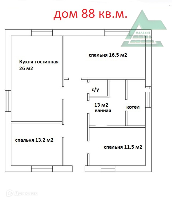 Общая площадь 88 м2