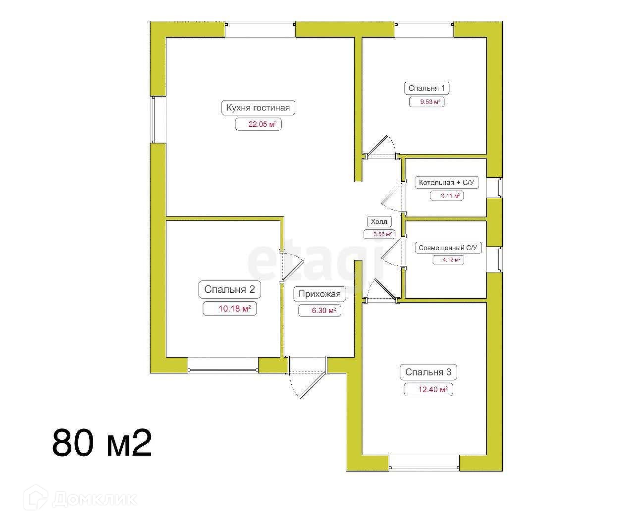 Общая площадь 80 м2