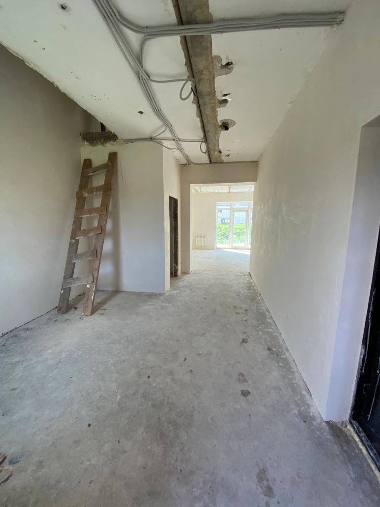 -Таунхаус представлен в предчистовой отделке, выравнены стены и полы. По всему периметру первого этажа имеются теплые полы Окна установлены качественные. В доме двух контурный Газовый котел.