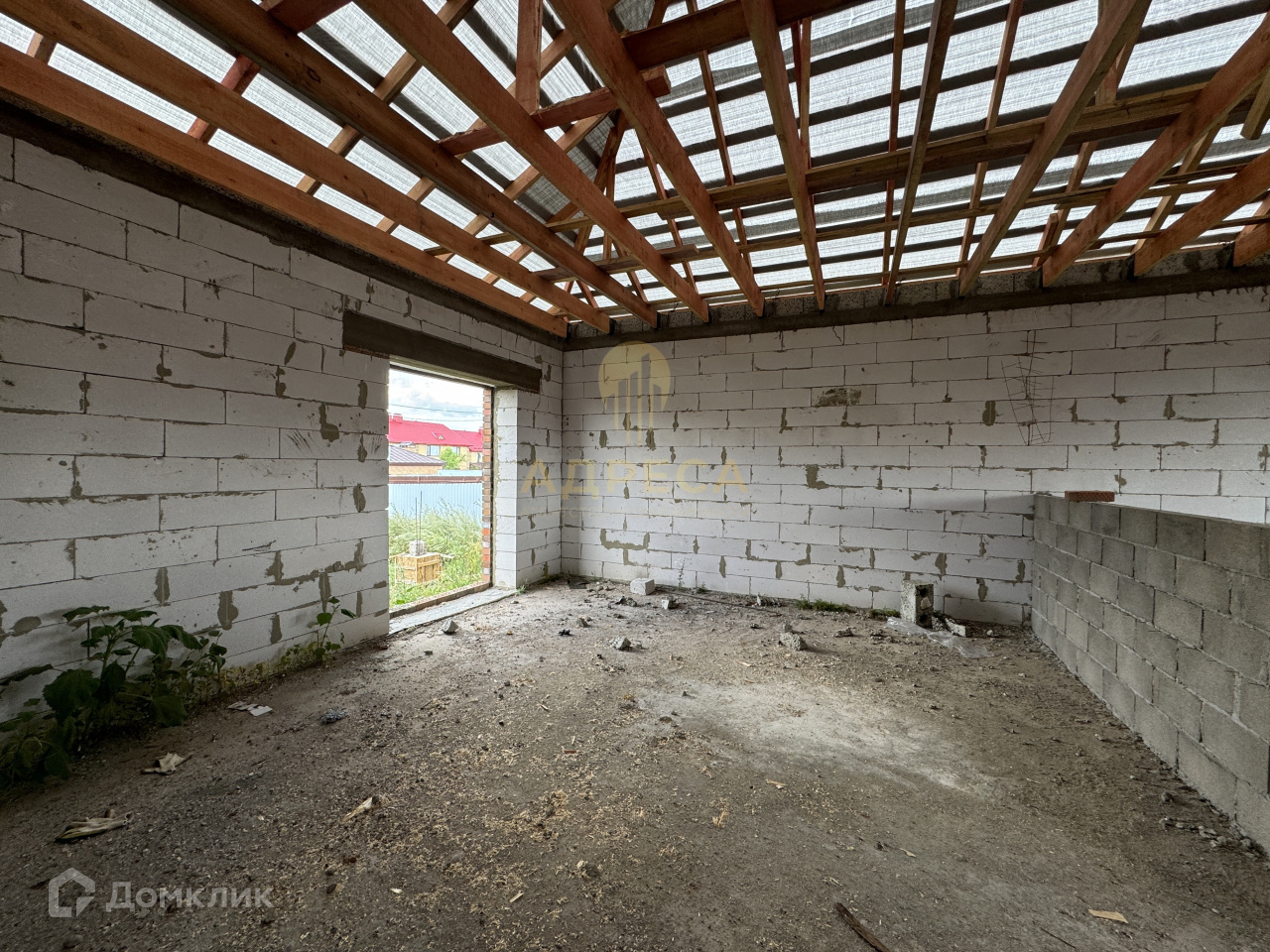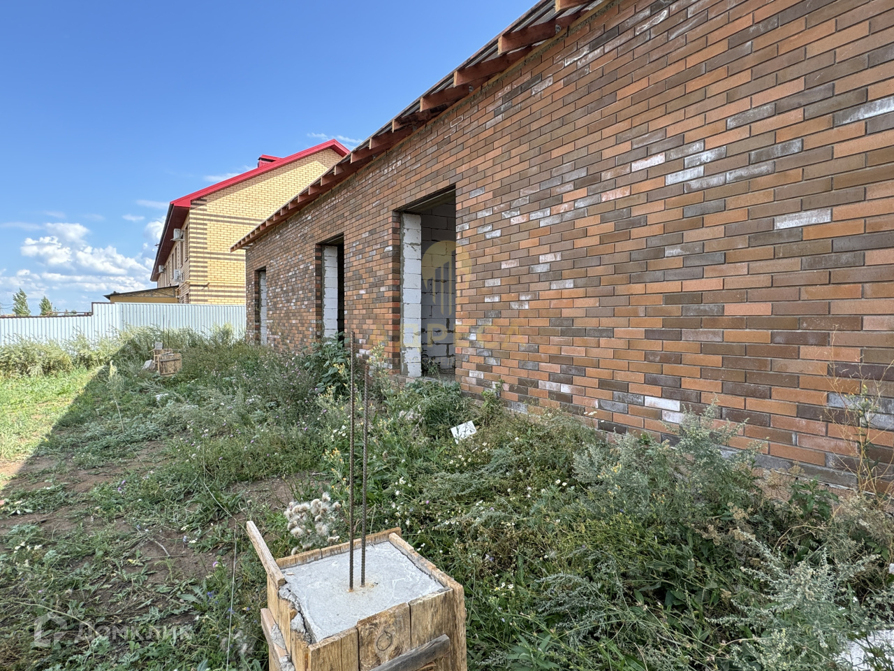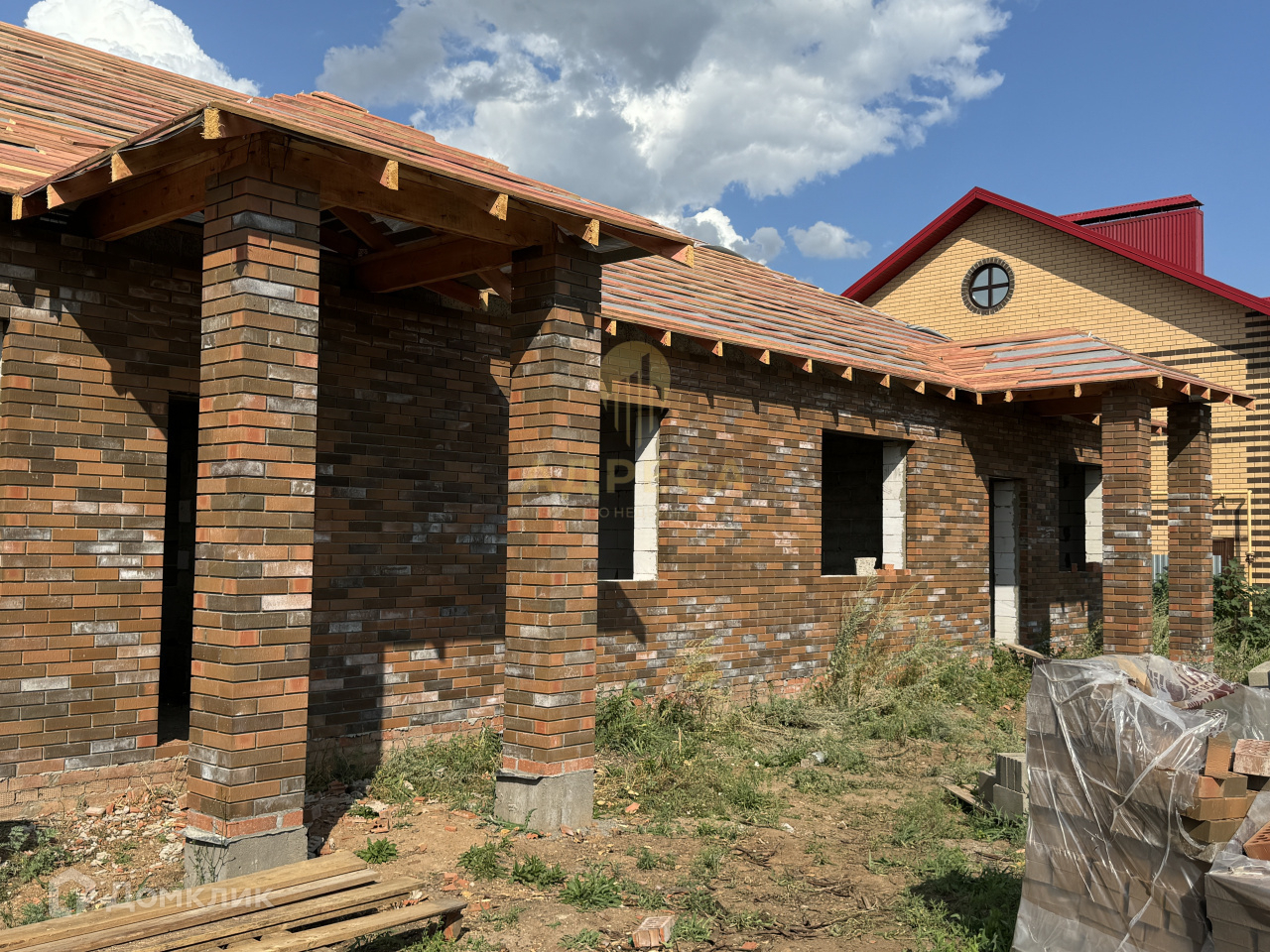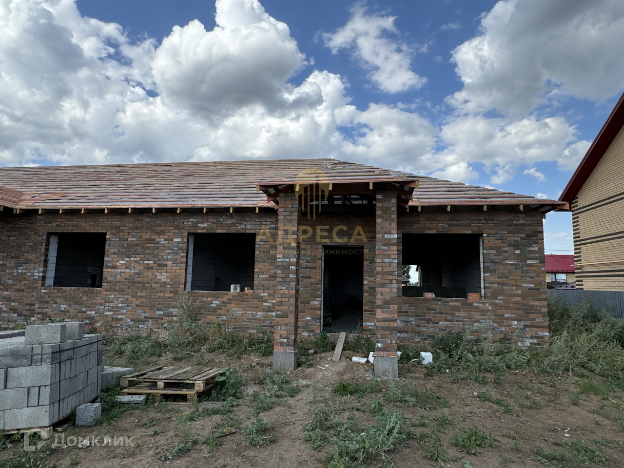 Стены: газоблок, облицовочный керамический кирпич.