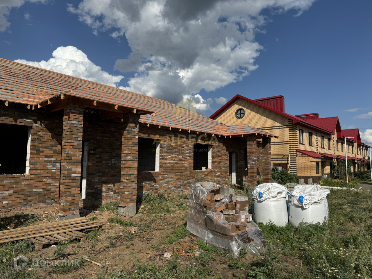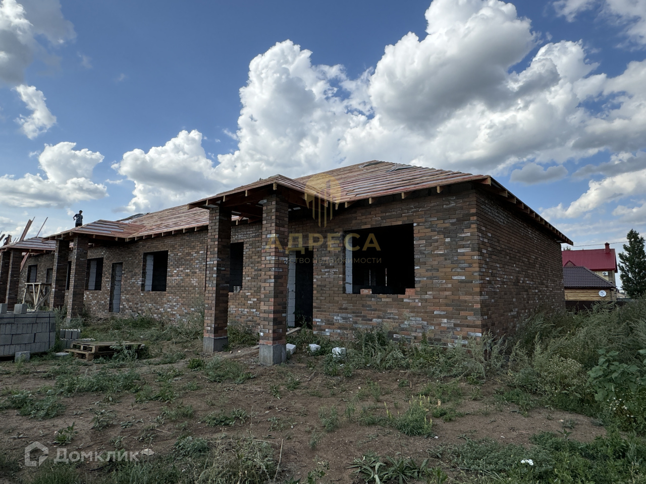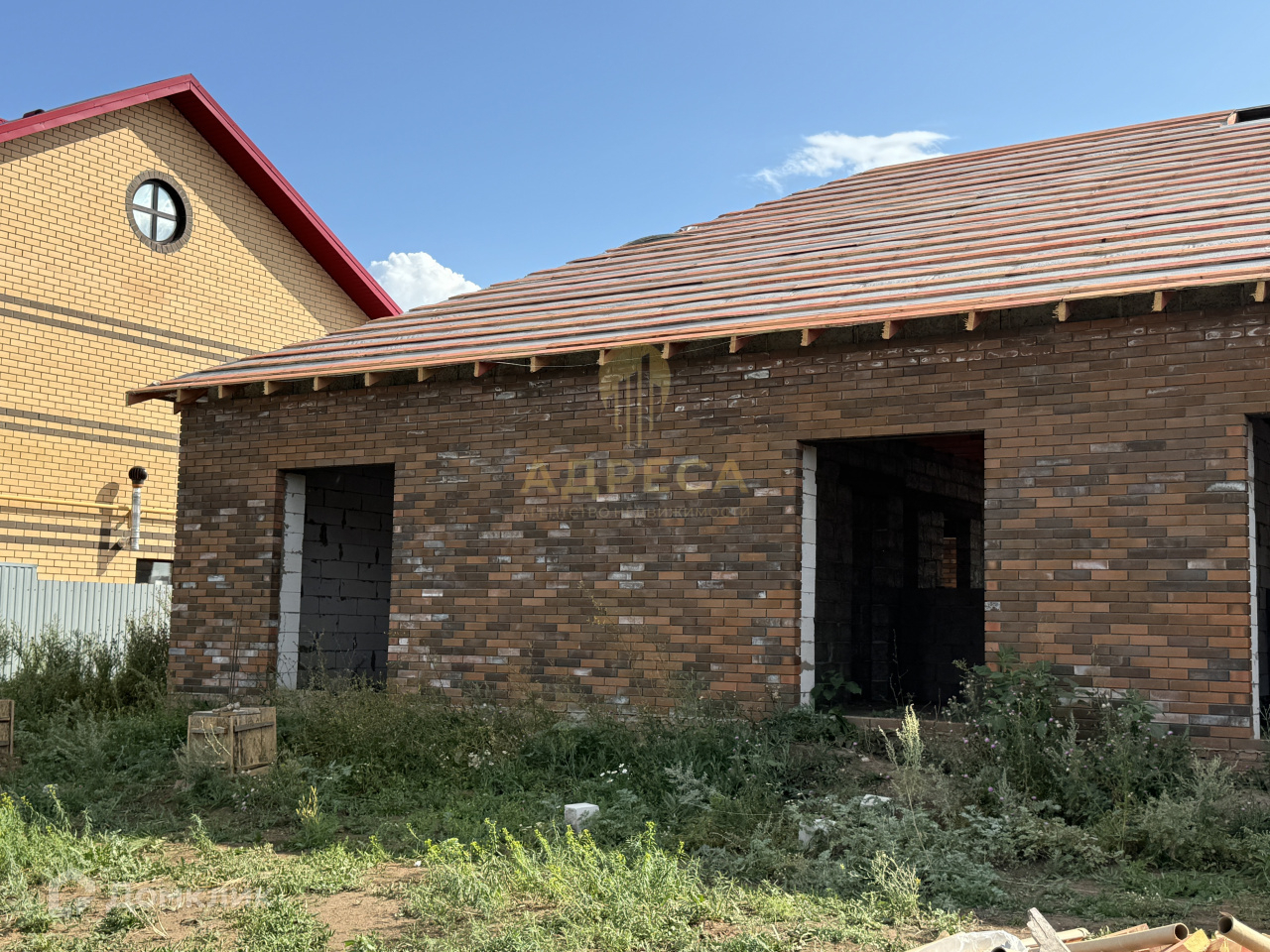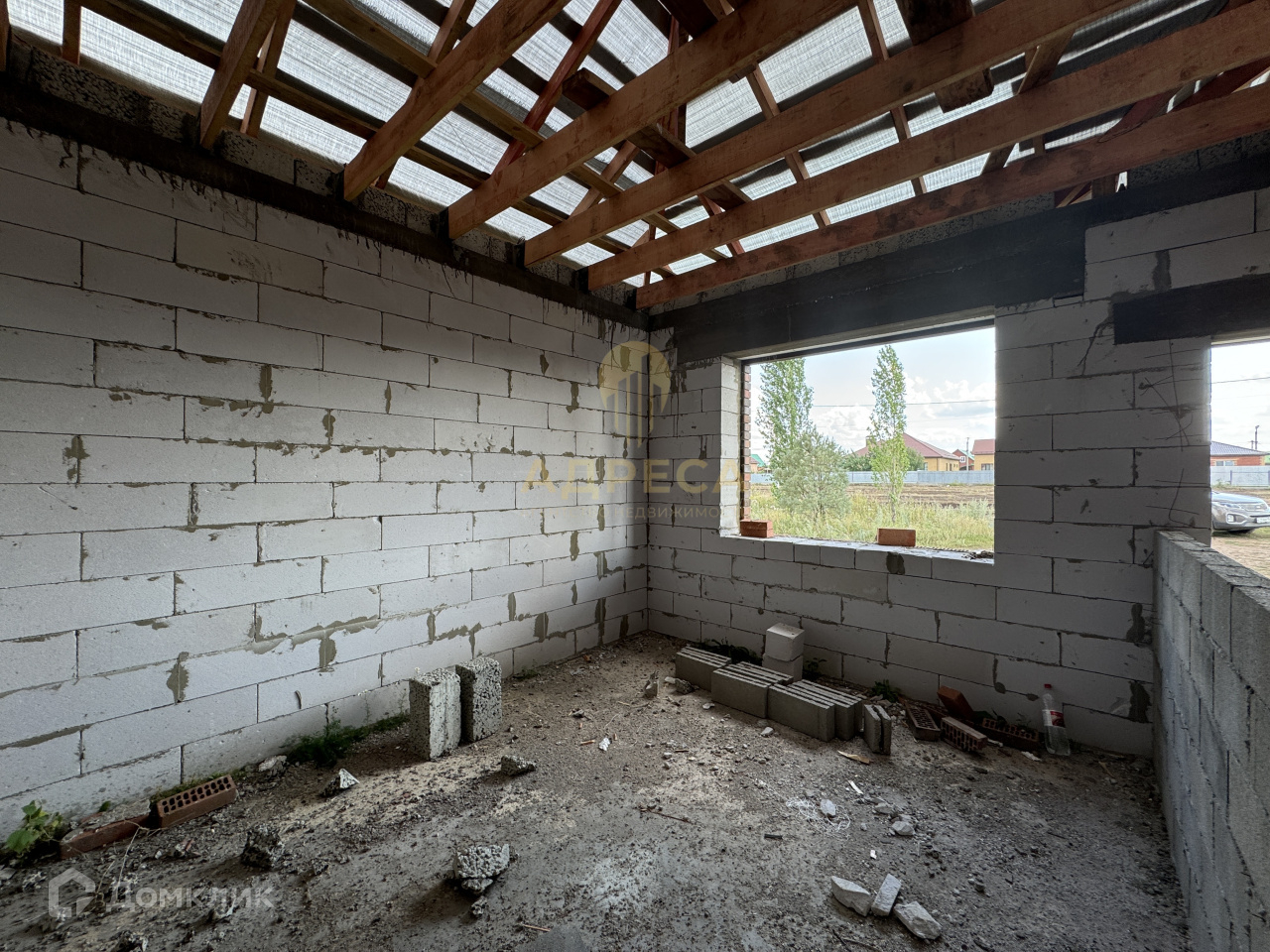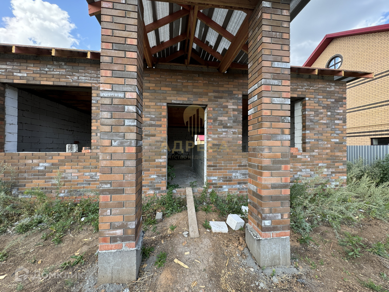 Стены: газоблок, облицовочный керамический кирпич.
