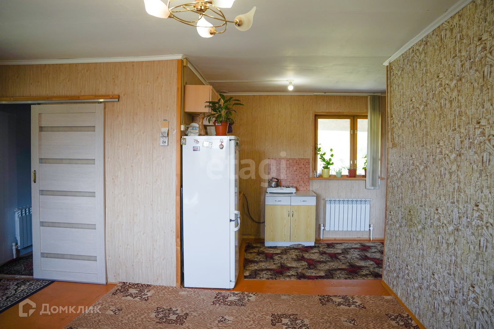 В доме имеется кухонный гарнитур, холодильник, диван, кресла, кровать, телевизор.