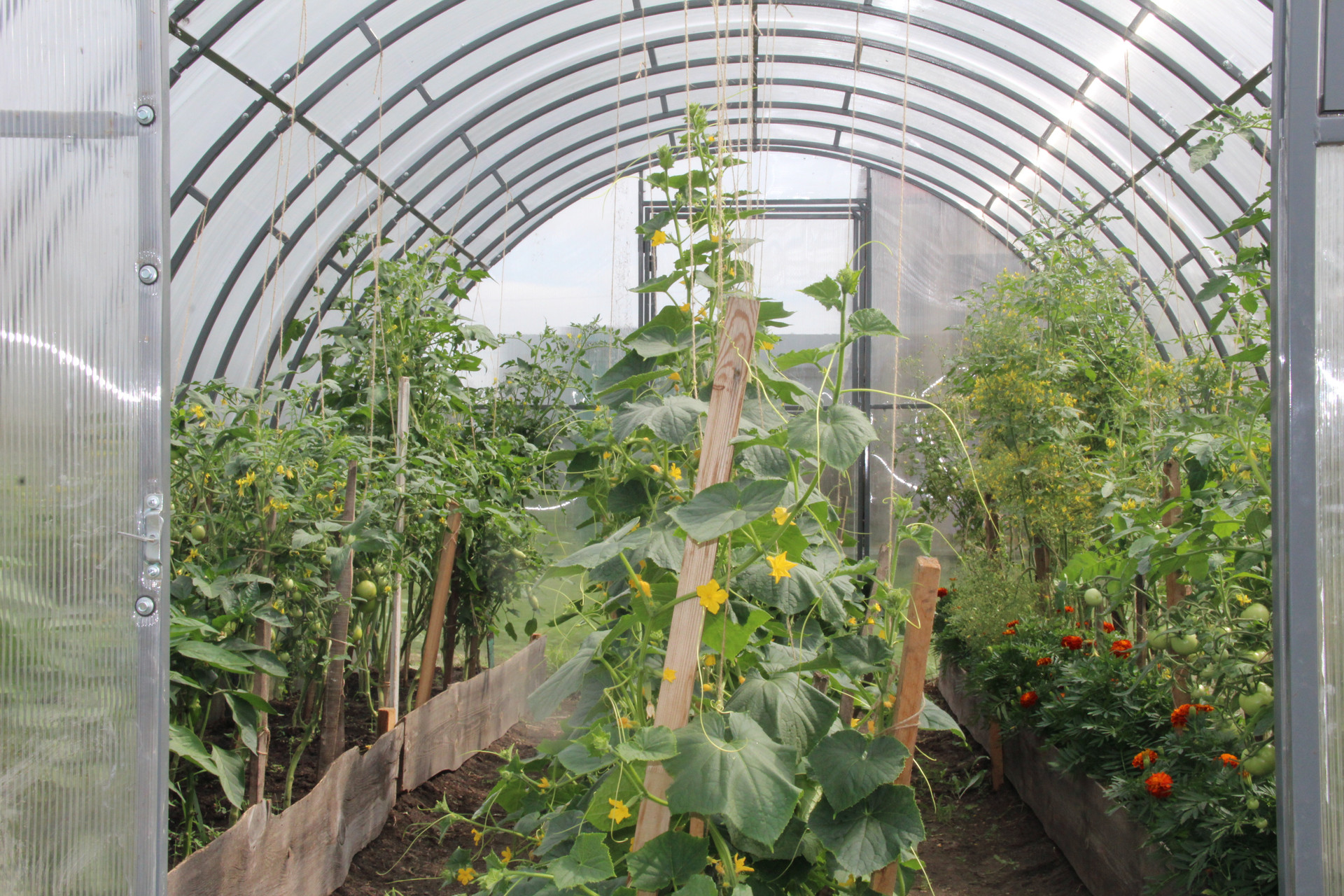 Огород ухоженные, отлично плодоносит. В огороде есть крупная и сладкая клубника, которая плодоносит с июня и до октября (не шутка), ревень и щавель. В 2023 году поставили еще одну теплицу, 6 метров, в ограде.