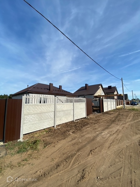 Участок огорожен бетонным декоративным забором. Ворота откатные.