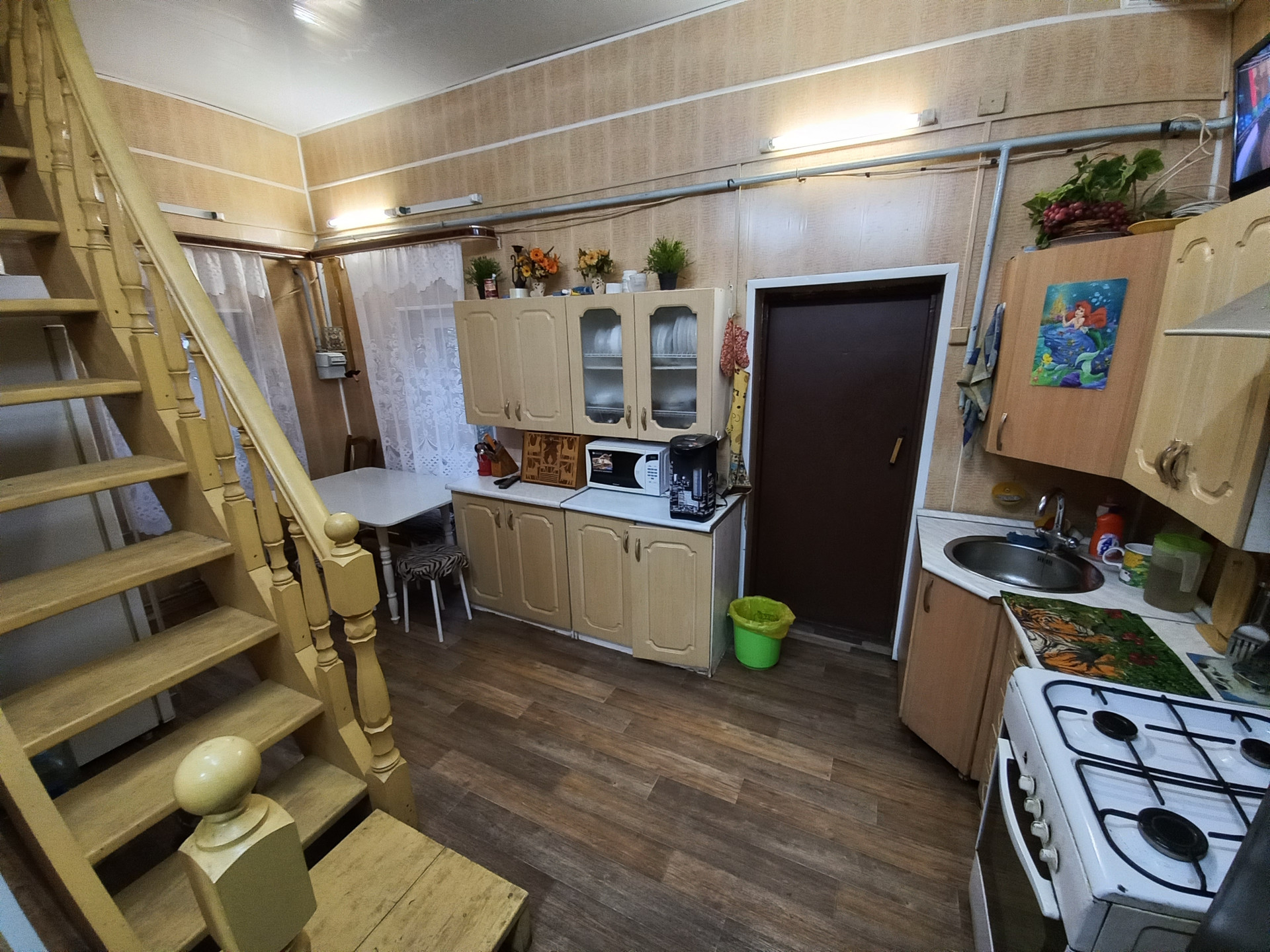 На первом этаже расположена кухня, совмещенный санузел, уютная спальня, просторный зал, веранда. На кухне новым хозяевам остаётся встроенный гарнитур. Остальная мебель по договоренности.