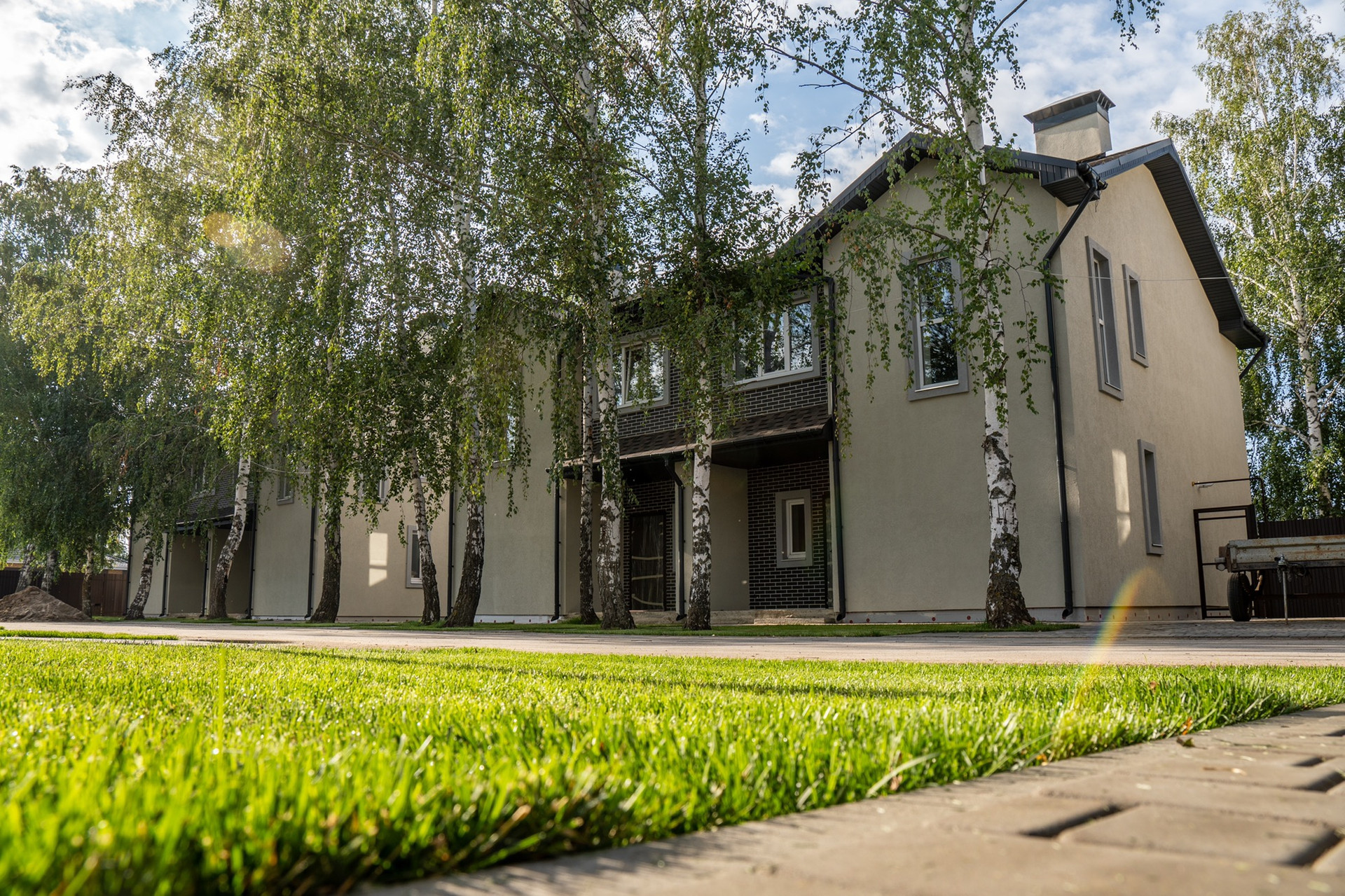 На участках есть красивые Деревья , березы . У каждого дома парковка на 2 автомобиля . На вьезде оборудована гостевая парковка .