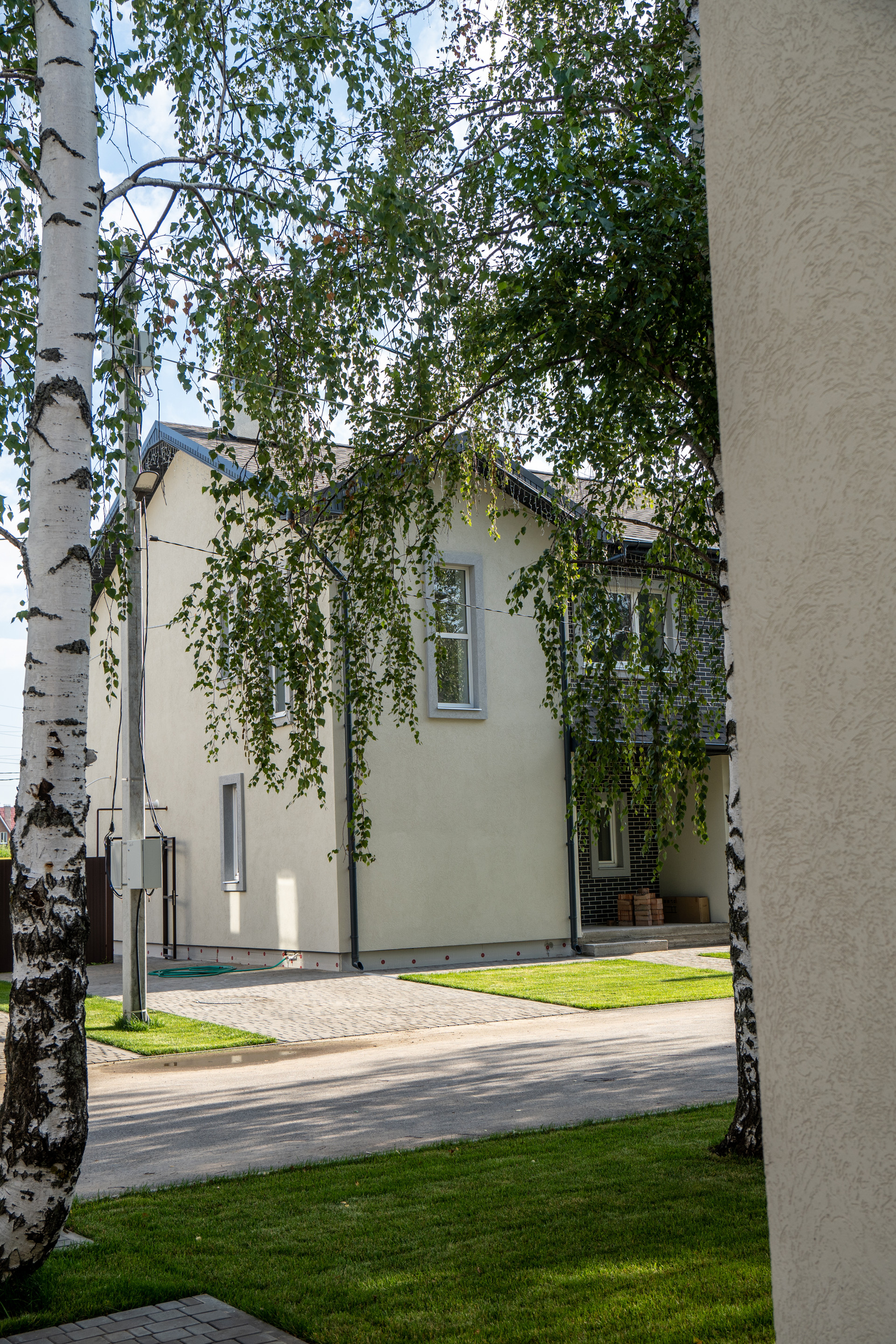На участках есть красивые Деревья , березы . У каждого дома парковка на 2 автомобиля . На вьезде оборудована гостевая парковка .