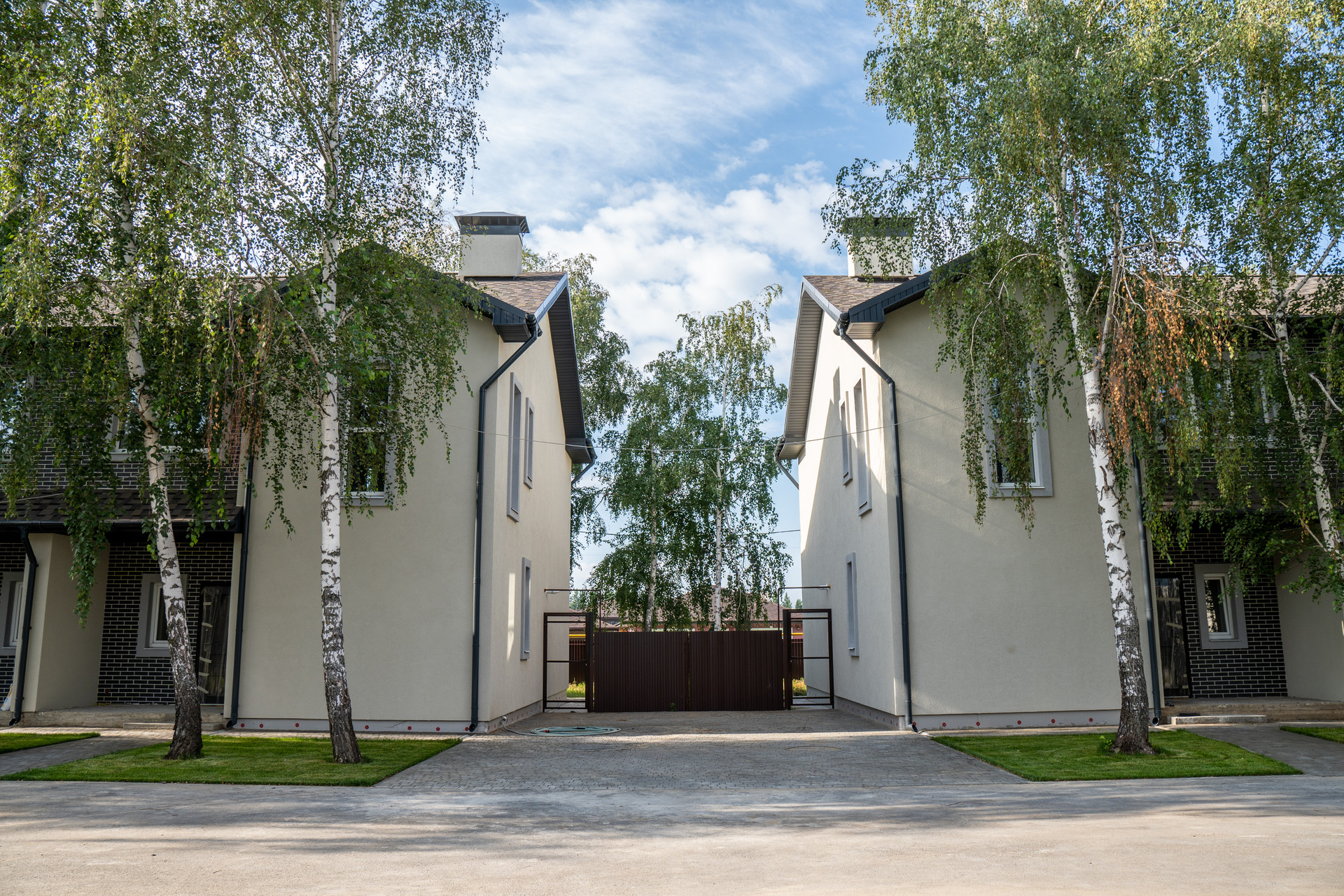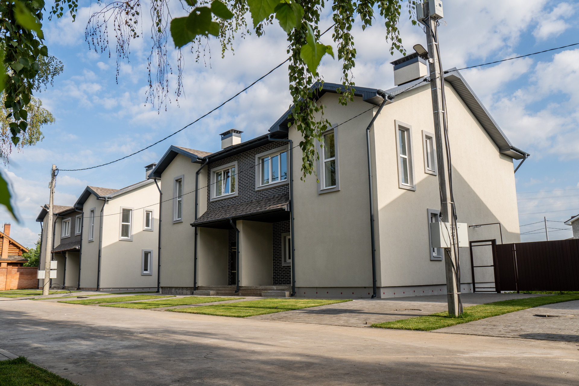 Дома объединены в закрытый коттеджный комплекс всего на 18 владельцев. Территория огорожена , предусмотрены откатные ворота на общем въезде с пультами управления и управлением с телефона, общая детская площадка .Вода из собственной Скважины , газ и электричество оплачиваются напрямую поставщикам без посредников. Канализация септик индивидуальный.