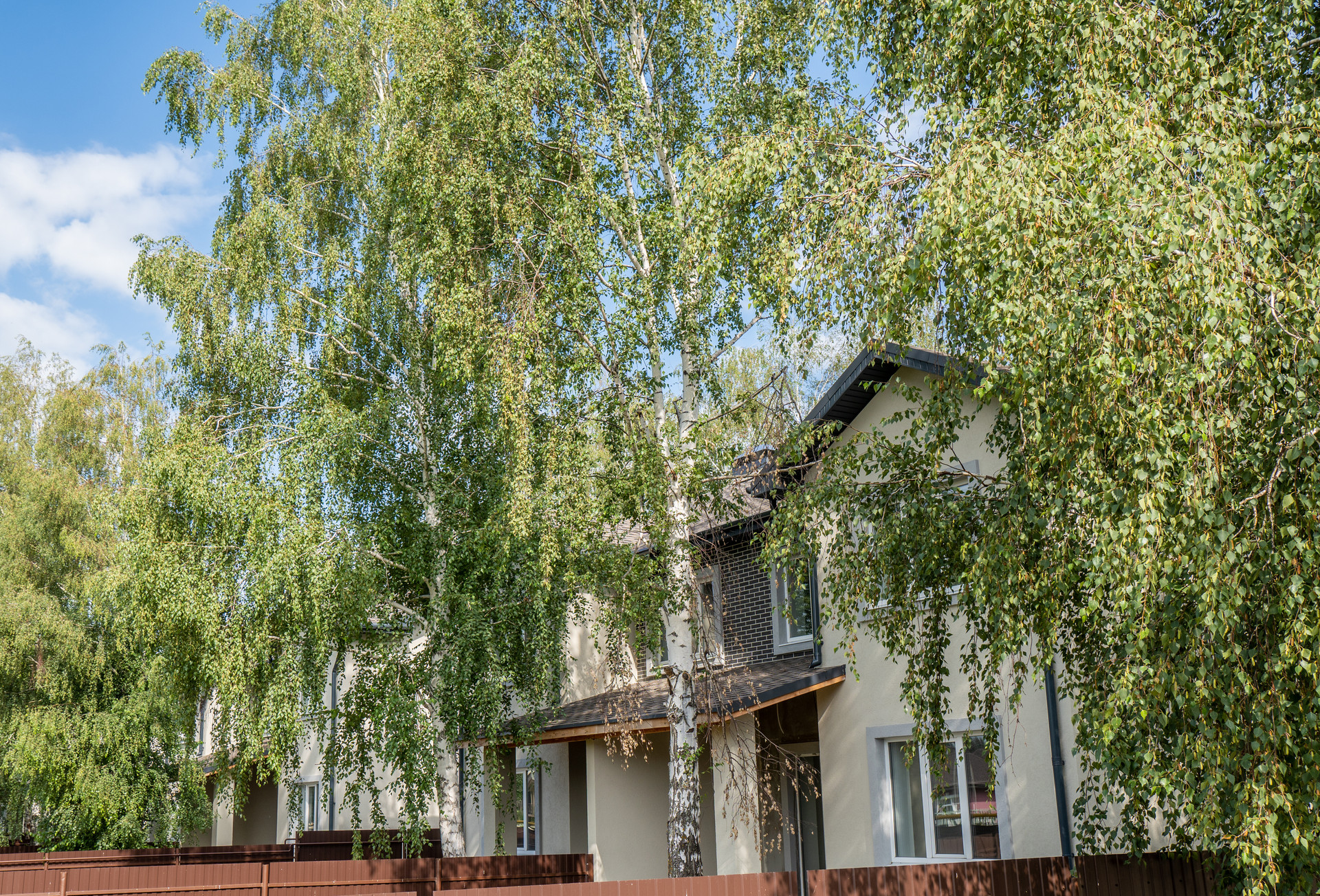 На участках есть красивые Деревья , березы . У каждого дома парковка на 2 автомобиля . На вьезде оборудована гостевая парковка .