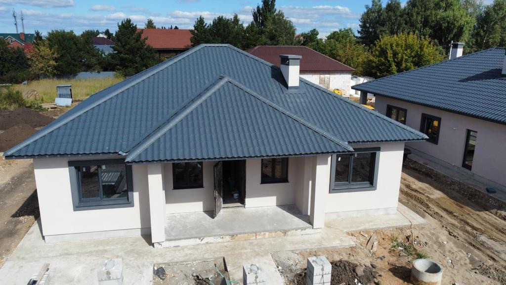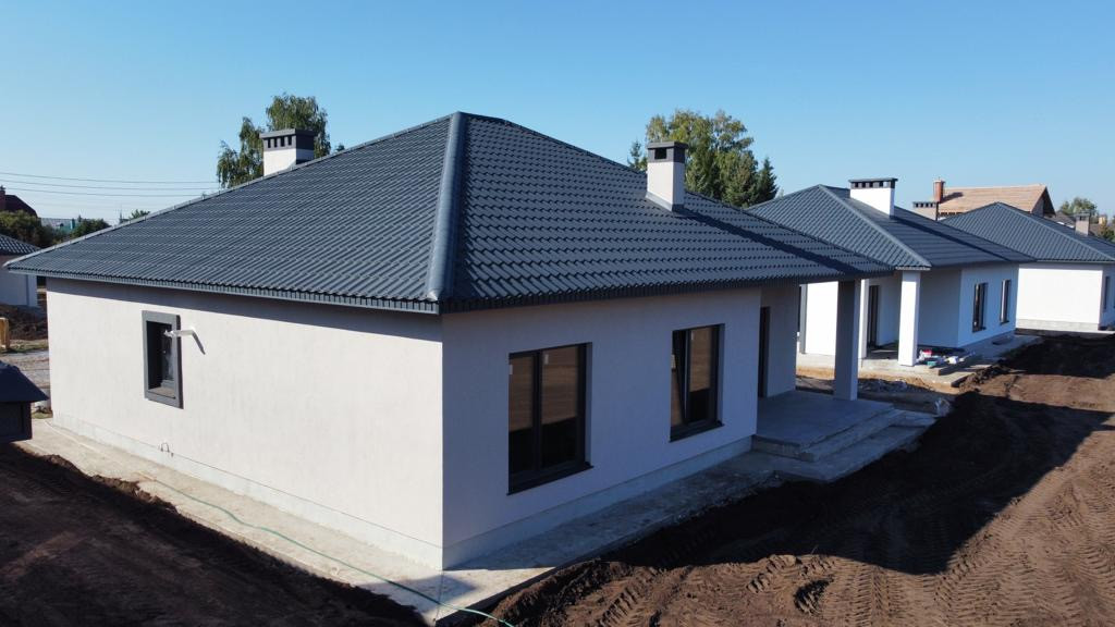 Жилой дом в чистовой отделке . Электрика, теплый пол , шпатлевка , откосы . Забор по периметру проф лист , бетонный с фасада .