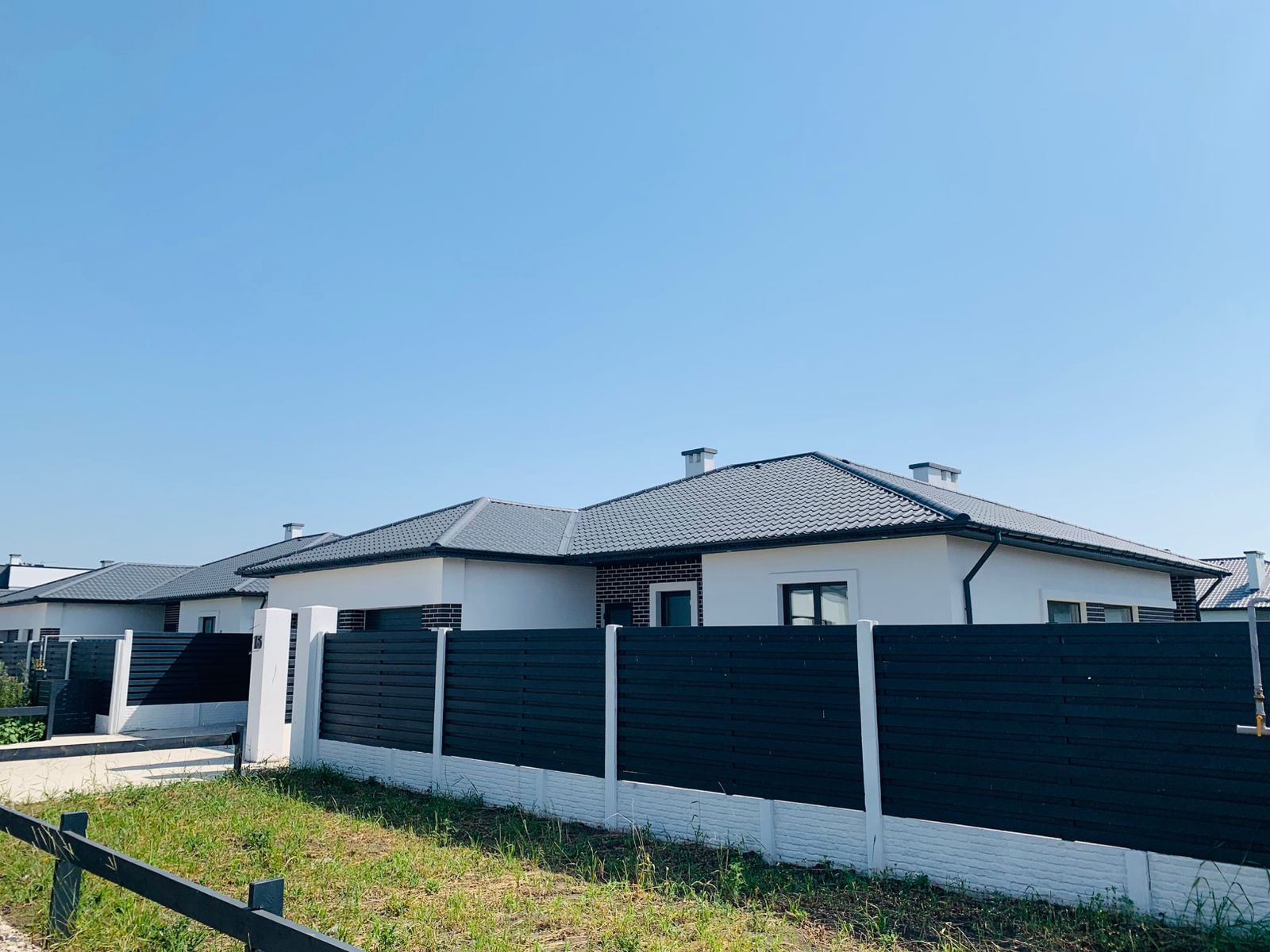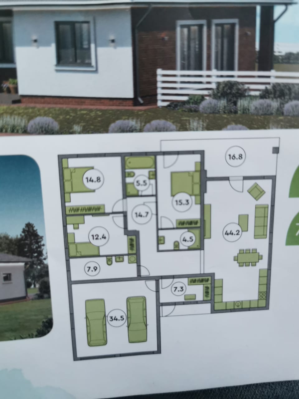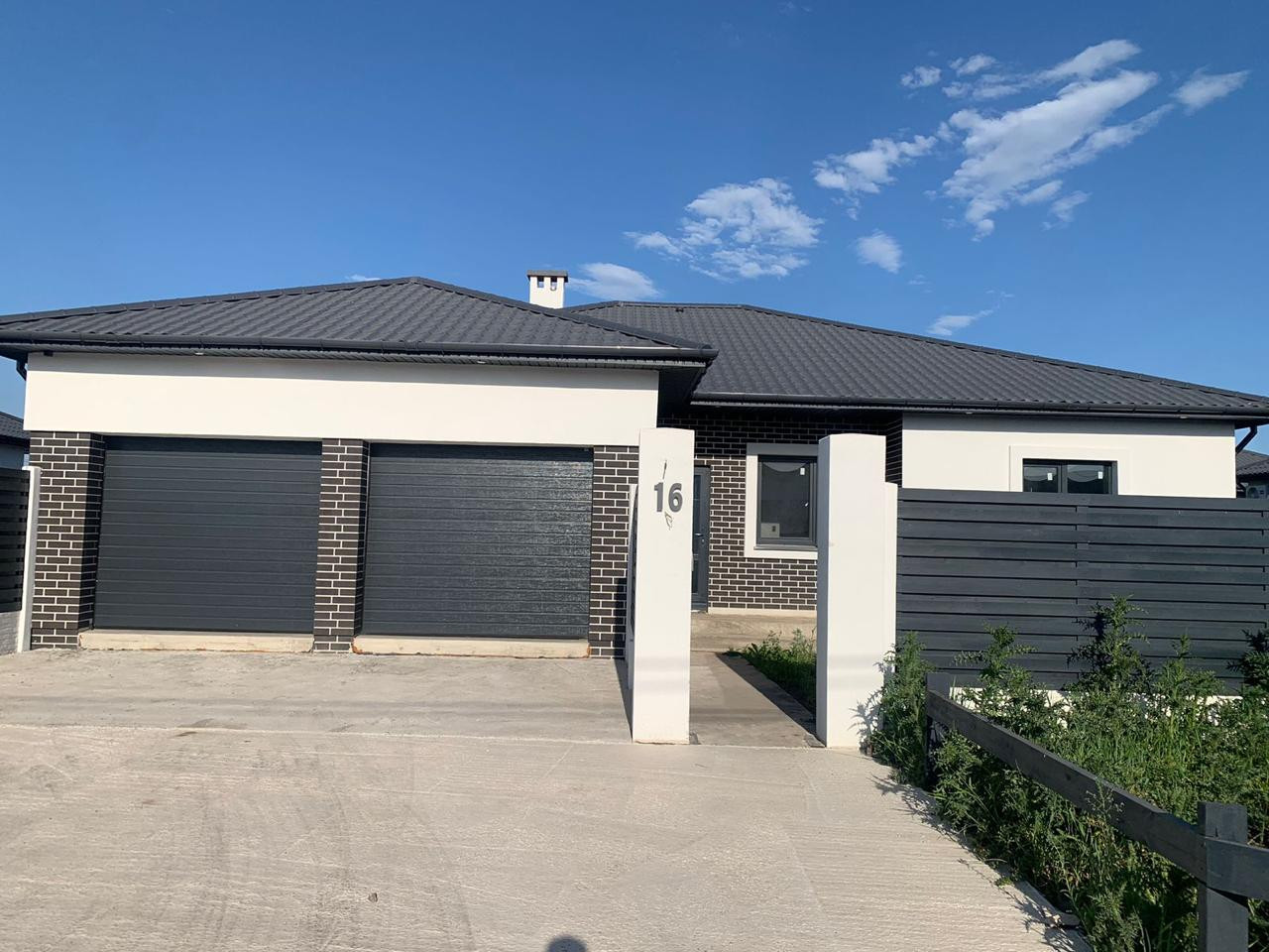 Площадь дома с двумя встроенными гаражами составляет 180 км.м.