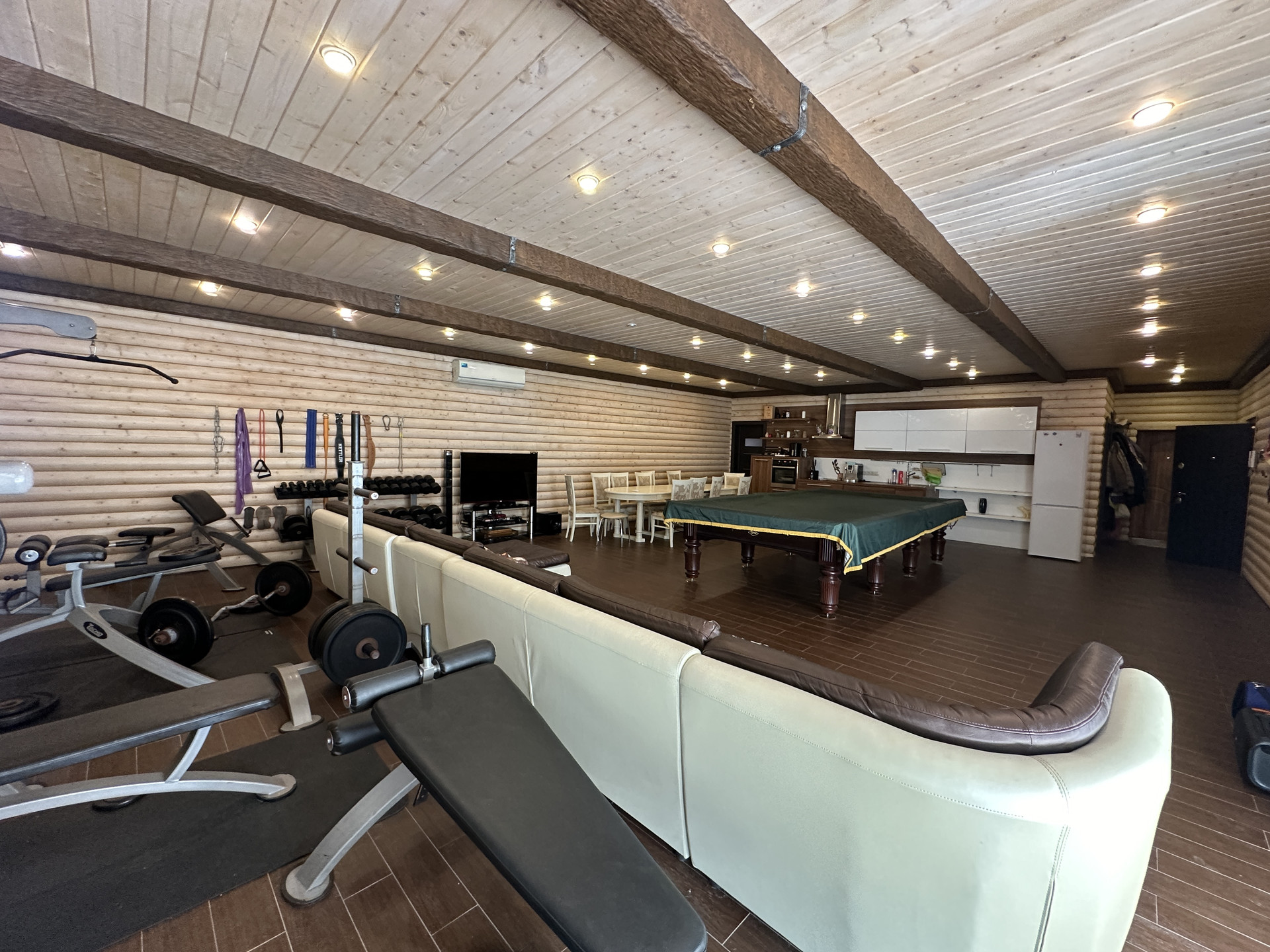 Пристрой 272 кв.м. - банный комплекс ( кухня- гостиная с тренажерным залом, санузел, сауна, бассейн, закрытая беседка (барбекю)