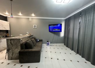 1-комнатная квартира свободной планировки (студия) Общ.площ. 42,8 кв.м с учетом лоджии. Зонирование пространства: зона кухни (с кух.гарнитуром и барной стойкой), зона гостиной (с диваном и телевизором), зона отдыха (с двуспальной кроватью). Лоджия 7 квм. полностью отделана и застеклена. В квартире два окна (в т.ч. балконная дверь). Свежий хороший ремон... |