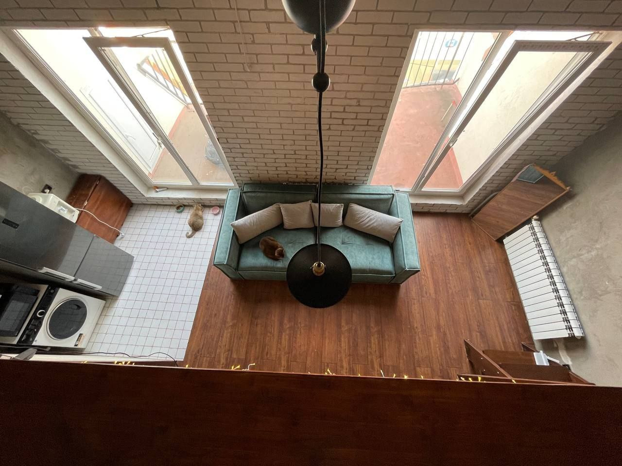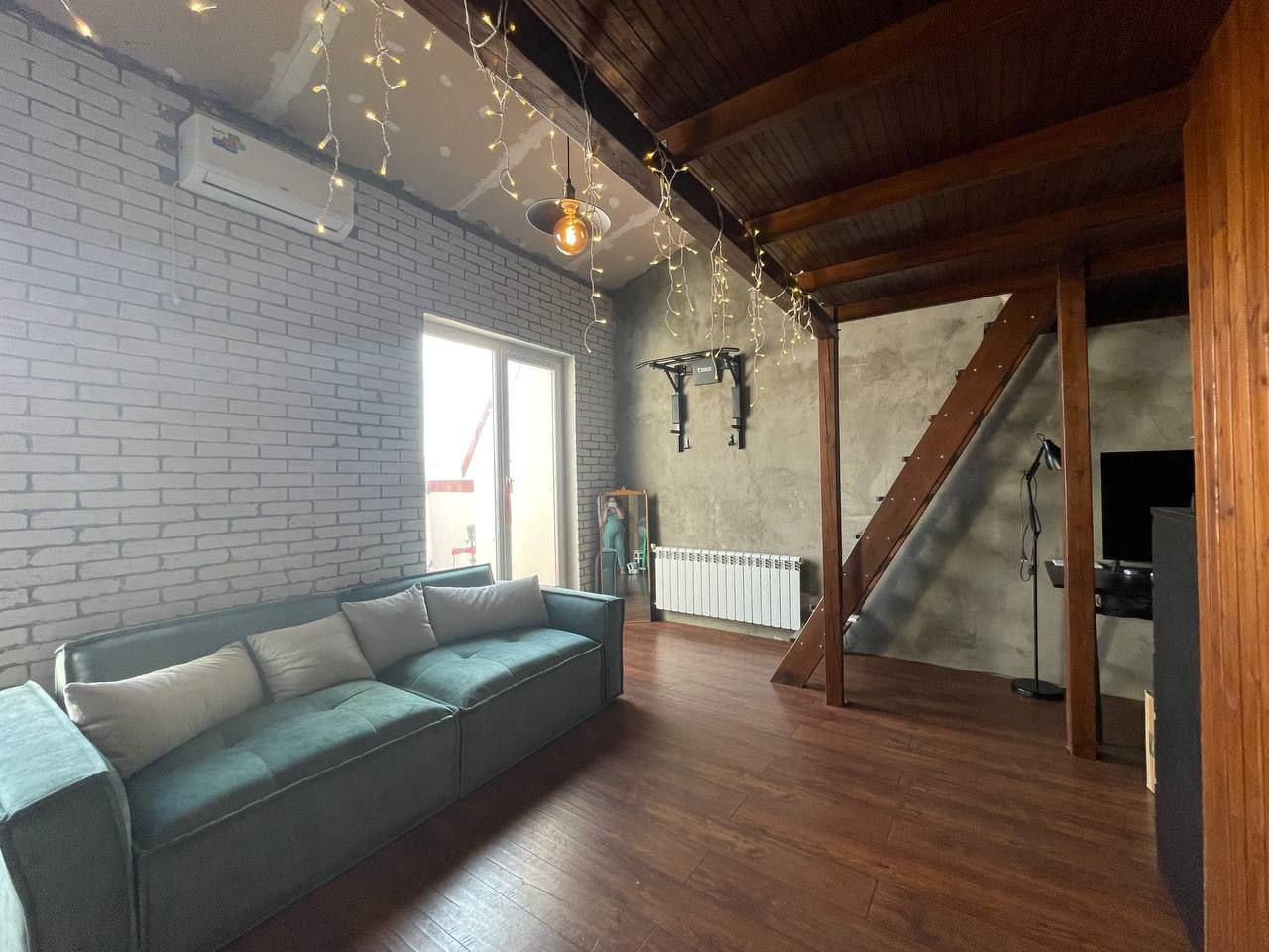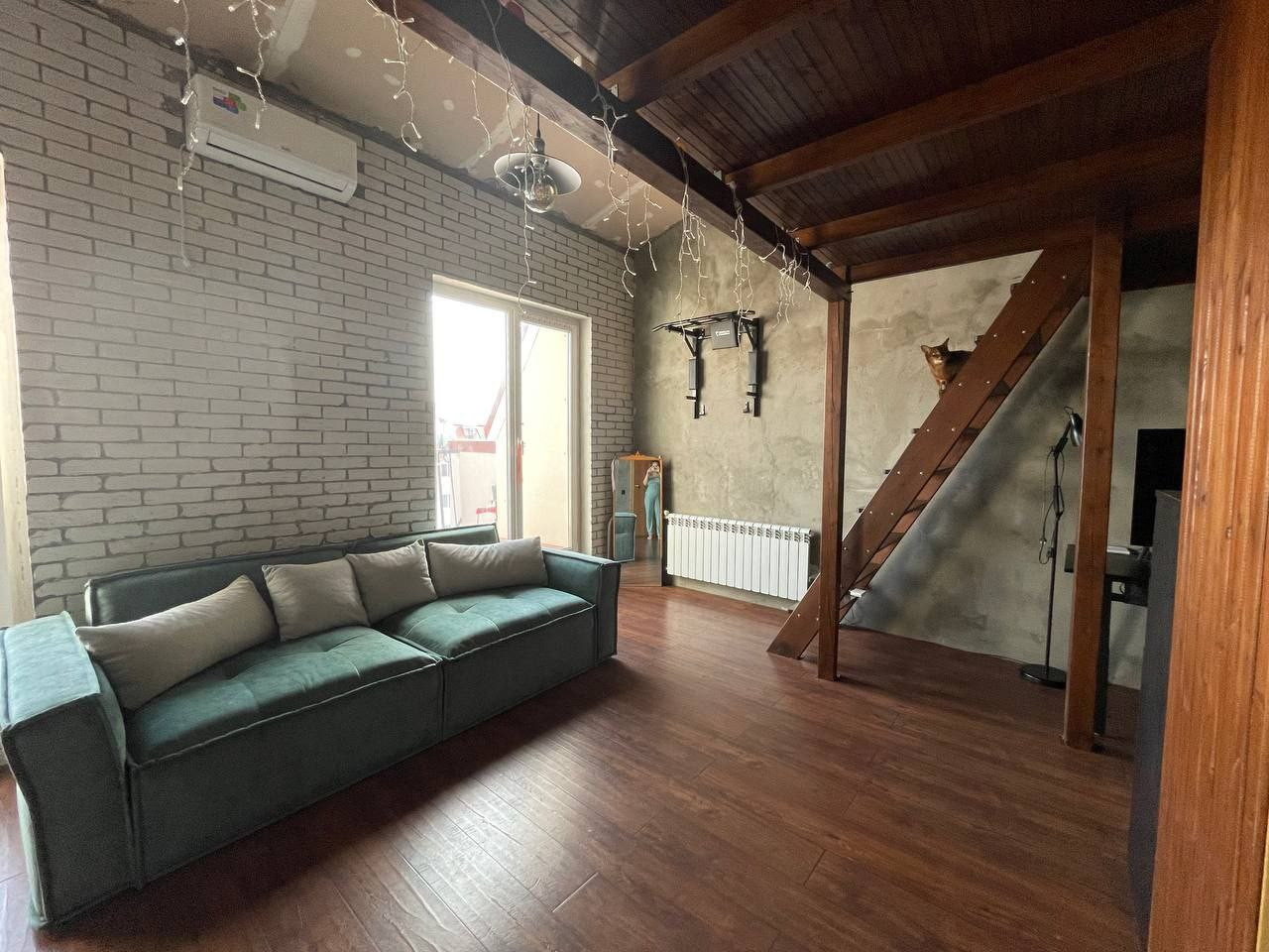 Квартира в двух уровнях Кухня-гостиная 20 кв.м на 1 уровне. Спальня на втором уровне, Хороший ремонт. Два балкона и  две вместительные кладовки.