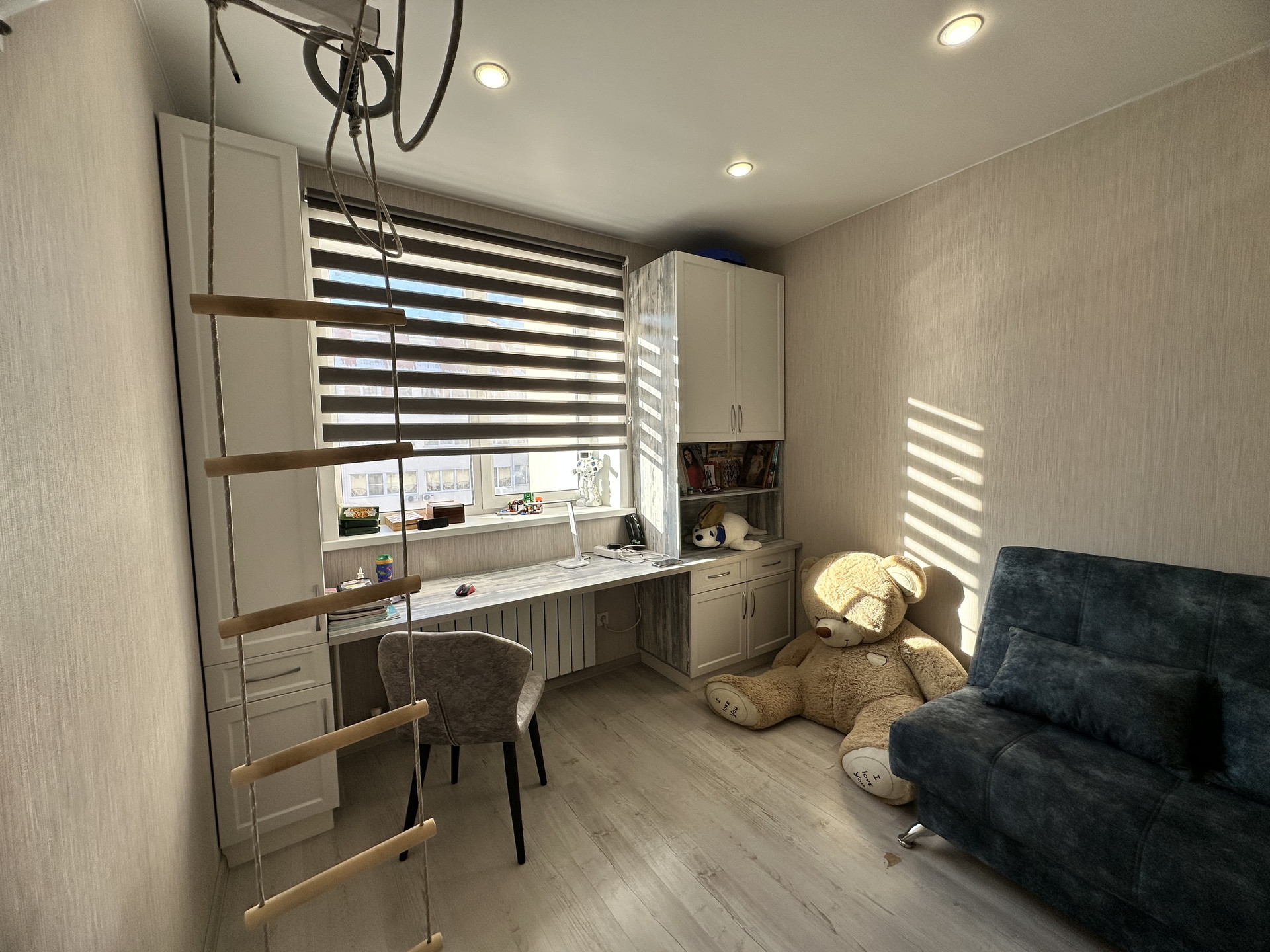 Очень уютная, светлая, чистая квартира. Окна выходят на солнечную сторону. Просторные большие комнаты, большая кухня, лоджия утепленная. В квартире остается кухонный гарнитур, встроенная мебель в детской комнате, шкаф в ванной комнате, сплит система. Рядом спортивный комплекс, магазин Миндаль, детей возит школьный автобус, остановка рядом. Чистый подъезд, отличные соседи.