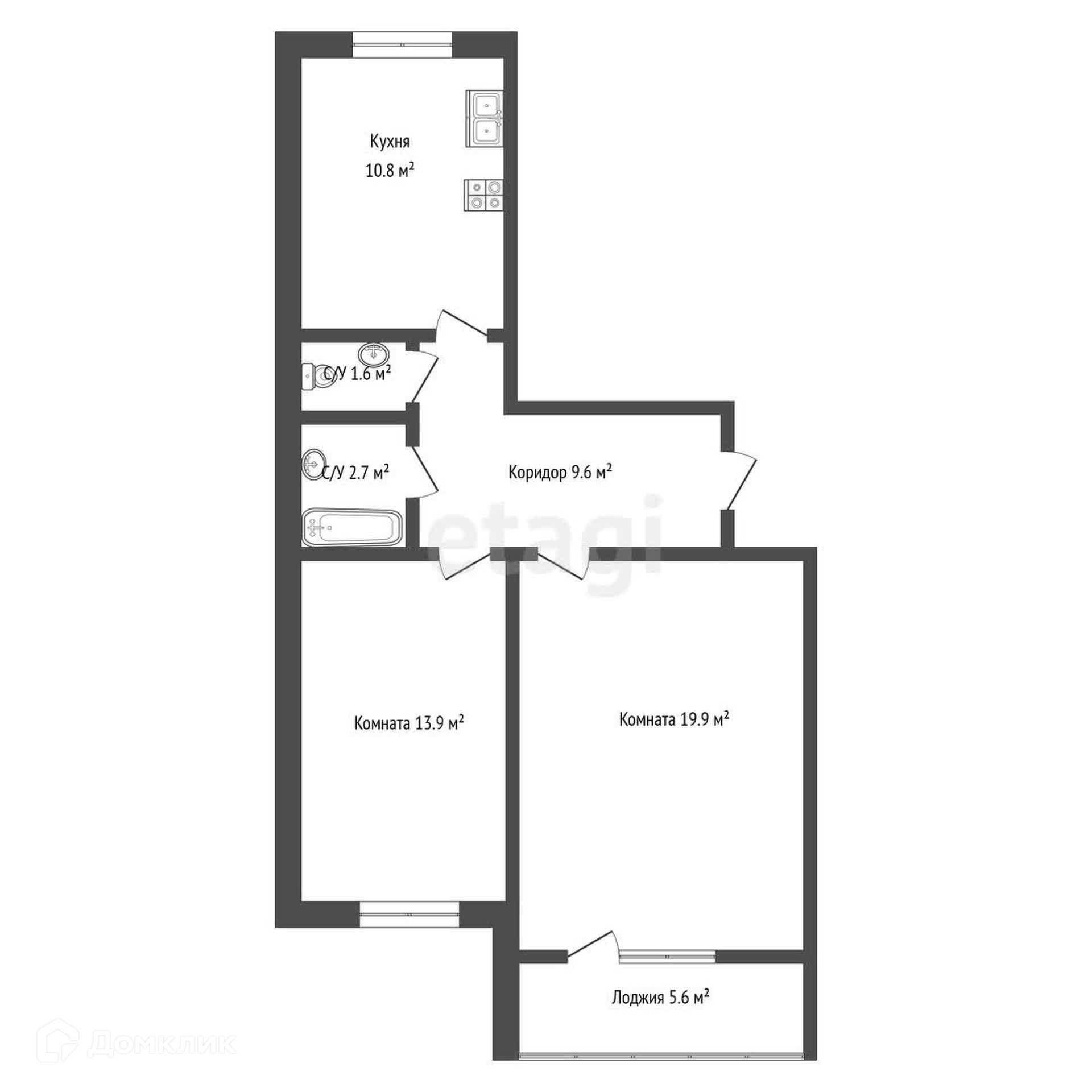 Общая площадь 64 м2