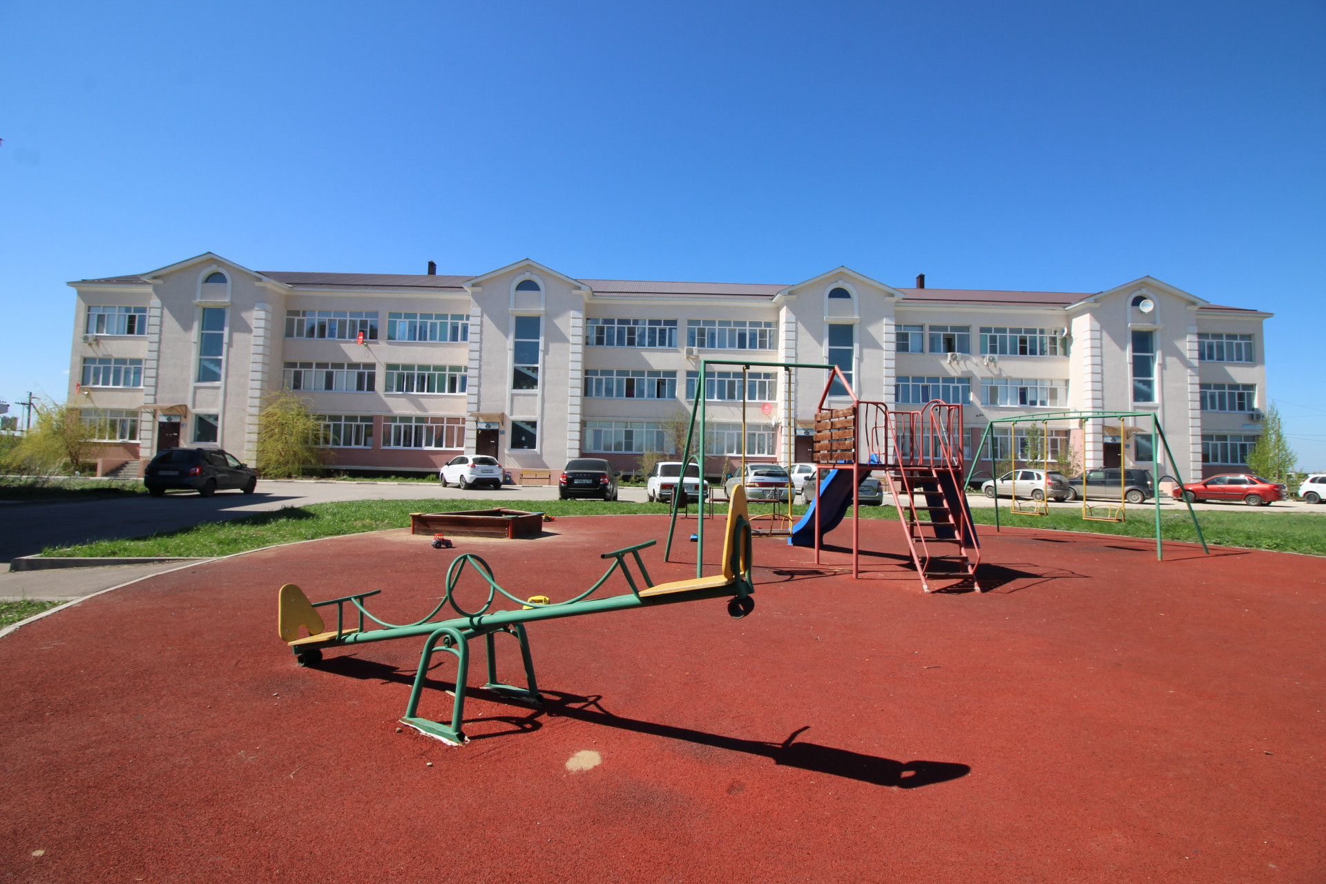 Во дворе оборудована остановка, каждое утро школьников забирает автобус!