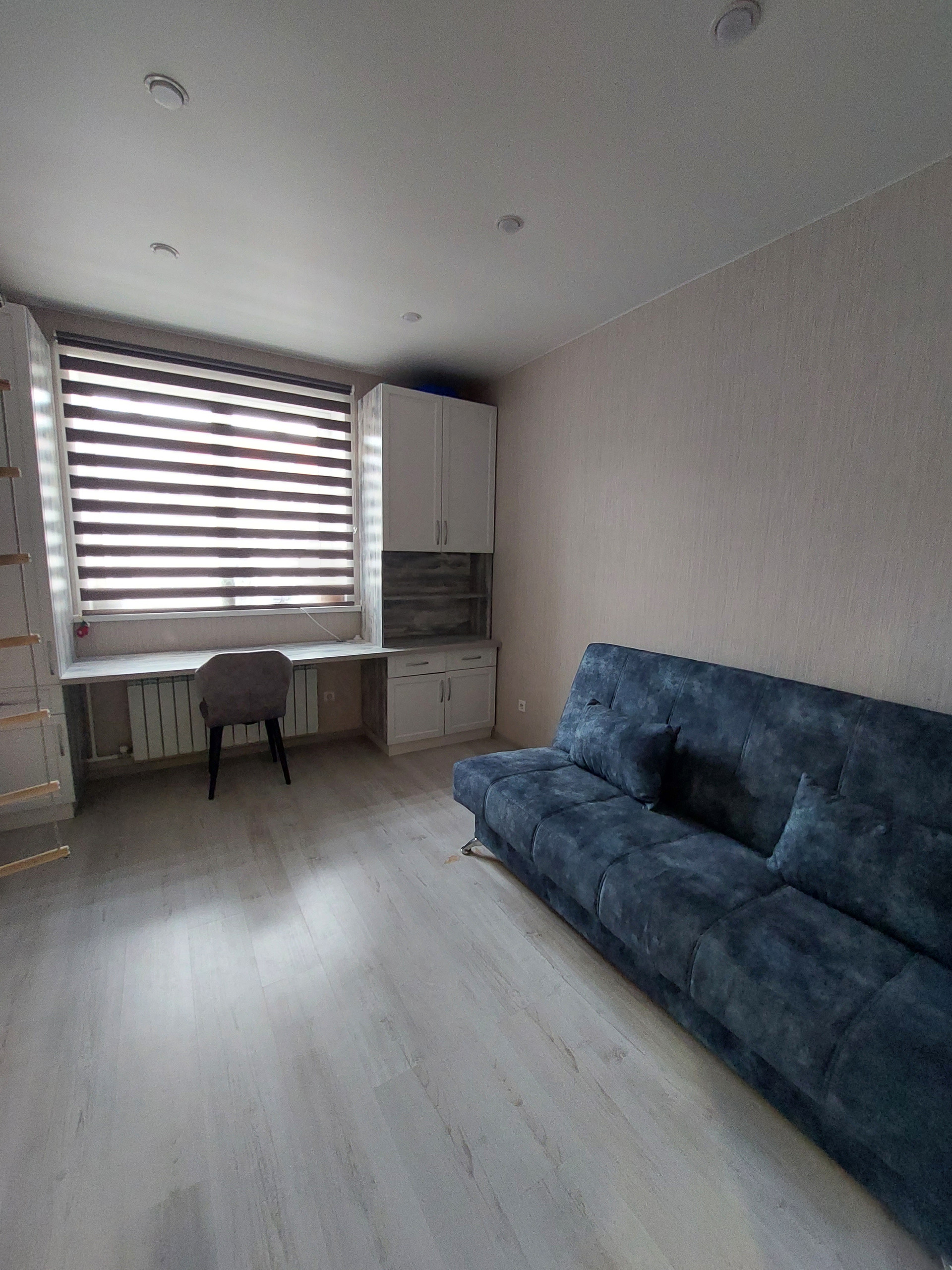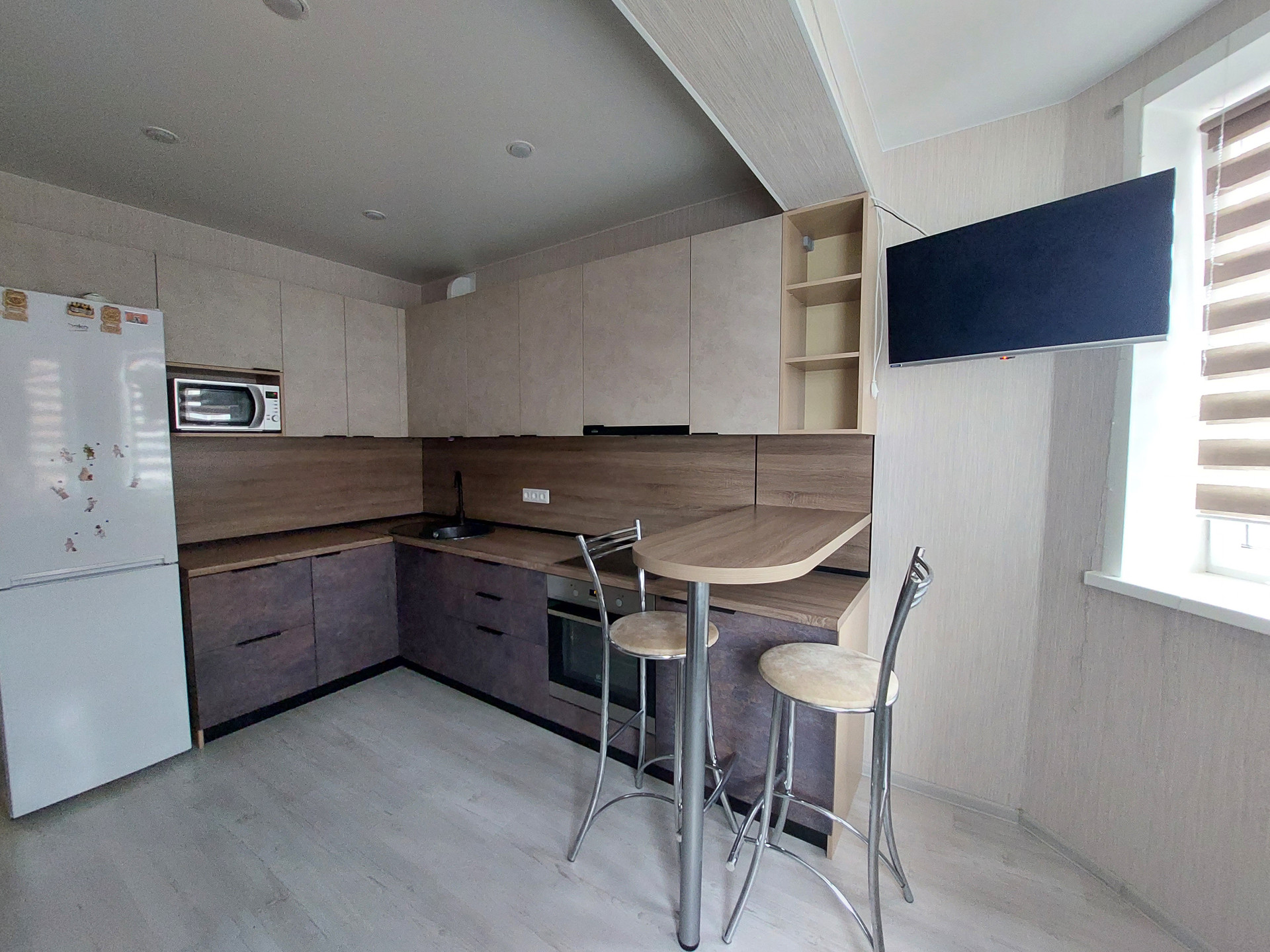 Установлен кухонный гарнитур со встроенной техникой, кондиционер, в детской организована рабочая зона.