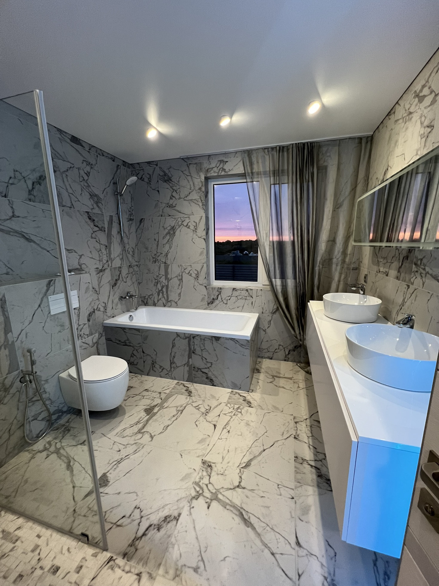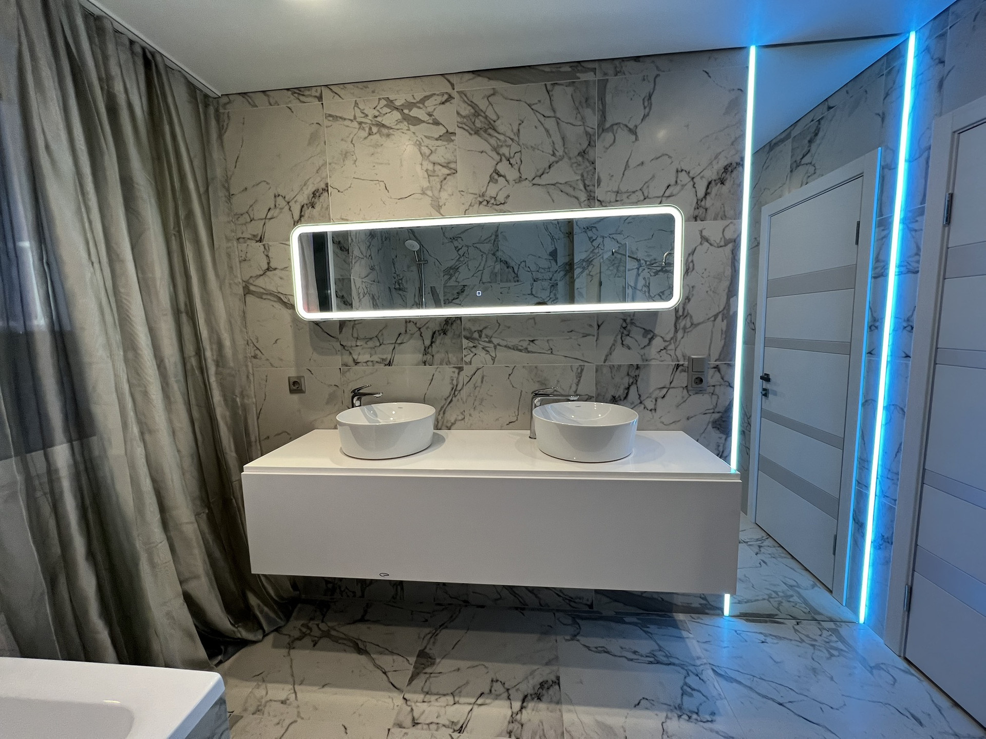 Добрый день, готовый Таунхаус в ЖК Флора, все новое, ничем не пользуемся, теплые полы на двух этажах, газовый котел, датчики движения в проходных зонах (коридоры, лестница) полы везде плитка, плинтуса плитка, лестница плитка,  стены под покраску, краска моющаяся (при подготовки стен использовали стеклохолст от трещин) натяжные потолки матовые с багетами с эффектом парения , в двух санузлах зеркала от потолка до пола с диодной лентой, кухня с эмалированными фасадами и винным шкафом с подсветкой, сейф и так далее.