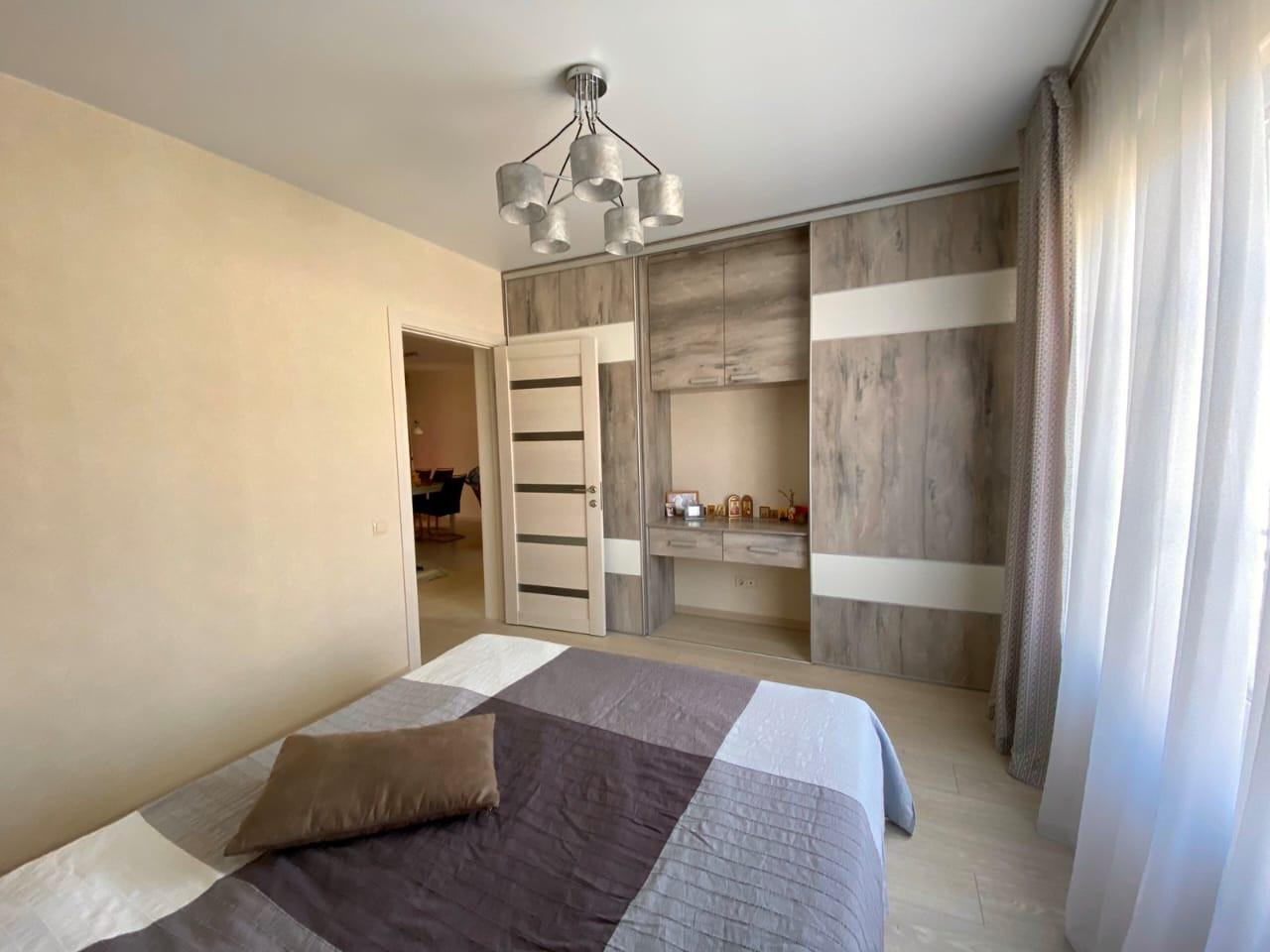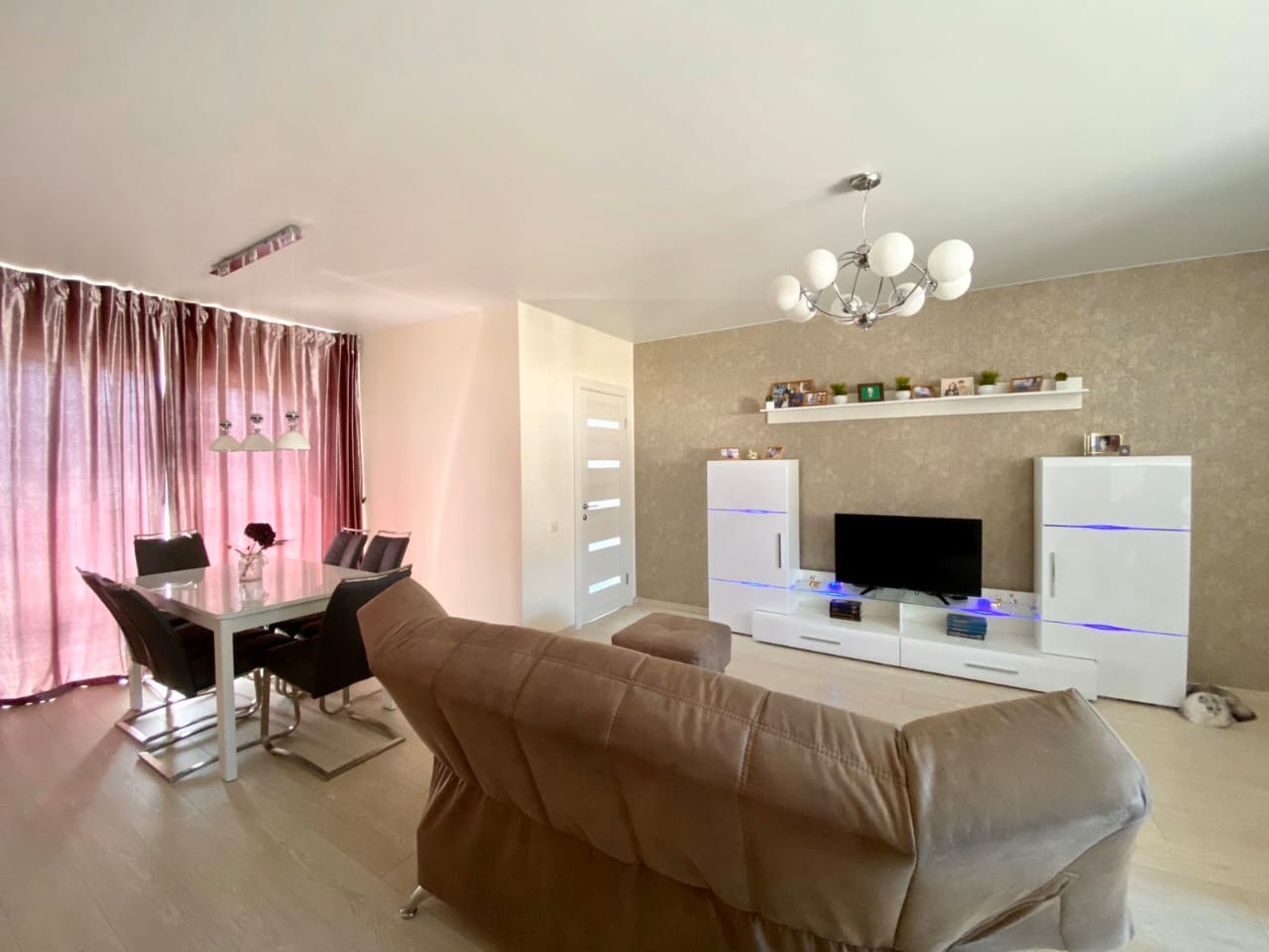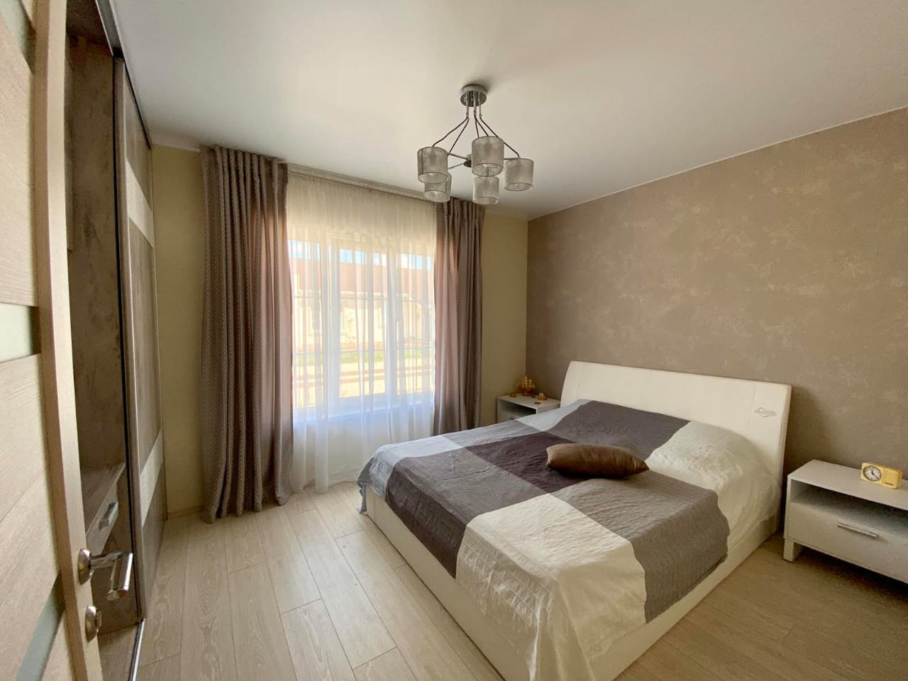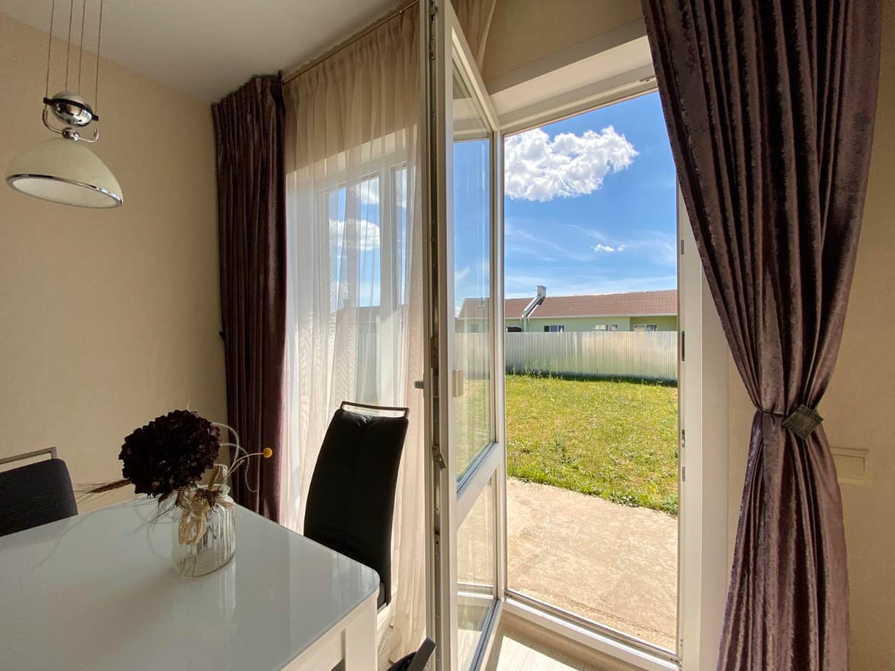 Таунхаус на земельном участке в прекрасном, ухоженном состоянии с мебелью. Потолки натяжные. Полы-ламинат, в кухне и ванной комнате-кафельная плитка.Есть машино-место рядом с домом и возможность постройки гаража на земельном участке. На кухне электрическая плита. Из насаждений - абрикосовое дерево.