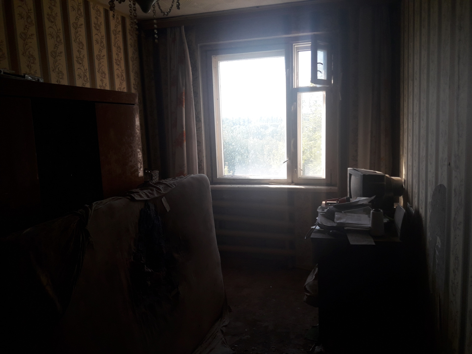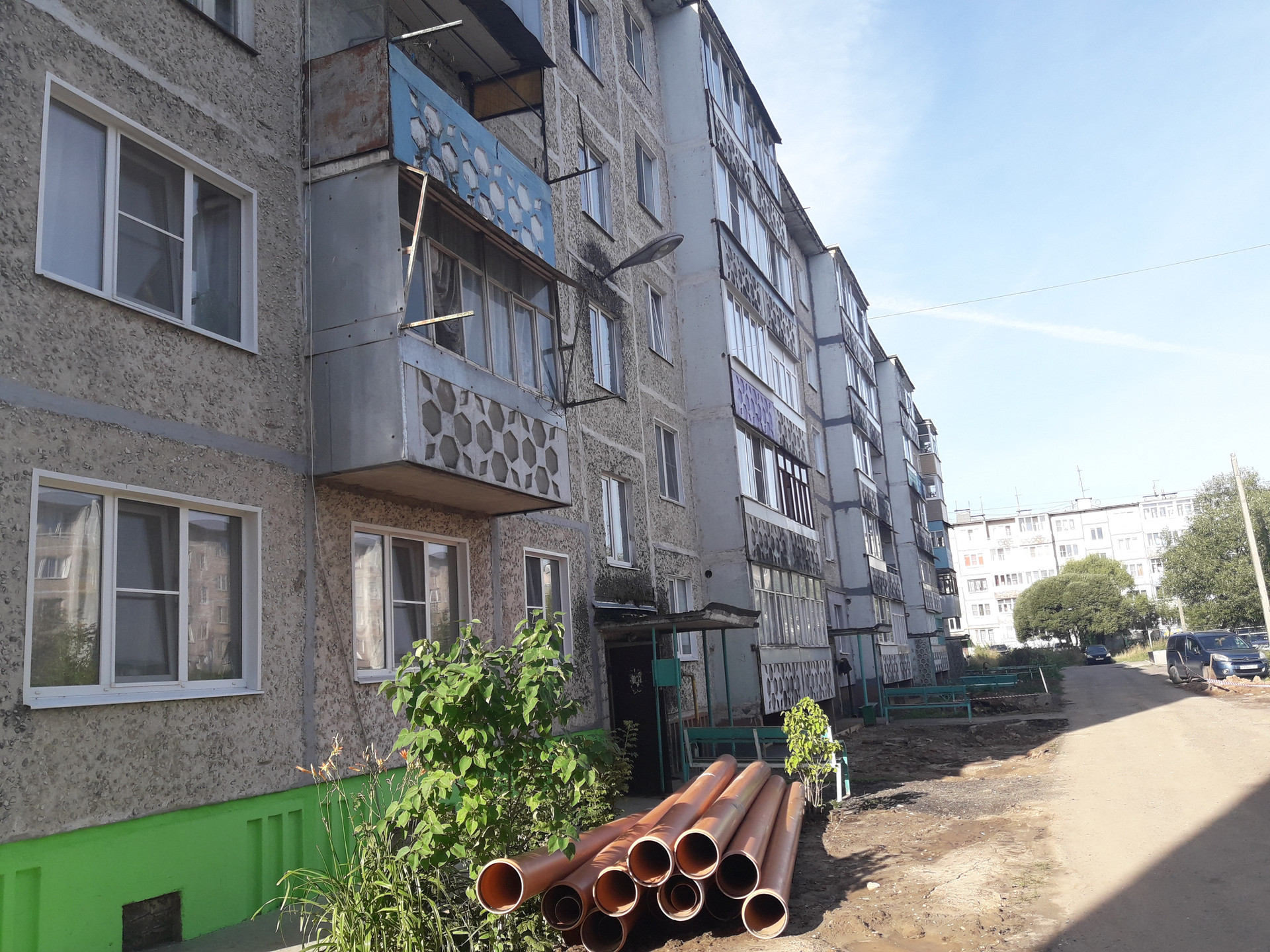 На третьем этаже пятиэтажного панельного дома.