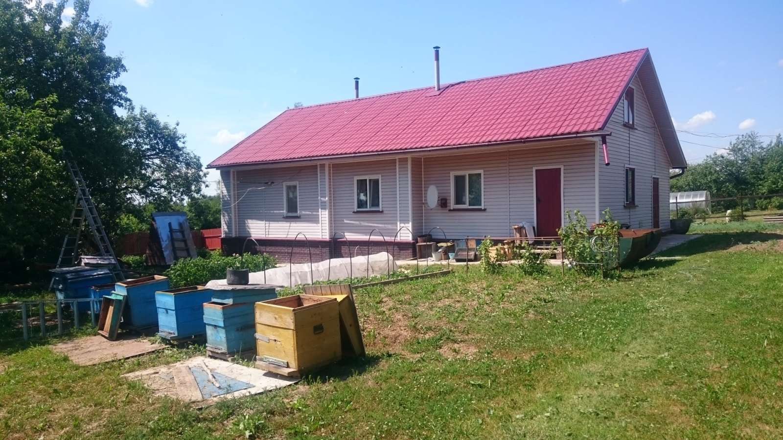 Продам дом, материал стен - бревно, обит сайдингом. Площадь дома 132 кв.м. Все коммуникации в доме (газ, свет, канализация, телевидение, интернет). На участке (12 соток) колодец, баня, сарай, гараж. Часть дома теплая (кухня, комнаты, санузел), есть неотапливаемые помещения (веранда, пристройка). Окна пластиковые. Есть большой чердак, из которого можно сделать второй этаж. В доме сохранена русская печь, действующая. Новая крыша. Дом находится на горе в живописном и экологическом месте, дом угловой, под горой река Держа. Подъездные пути хорошие (от МКАД 170 км по Новорижскому шоссе). В селе продуктовые и хозяйственные магазины, рынок, аптека, почта, кафе, школа, детский сад, отделение врача общей практики, автостанция, ж/д станция, церковь. На участке плодоносящие деревья, кусты, высажены туи. За забором посажены сосны.