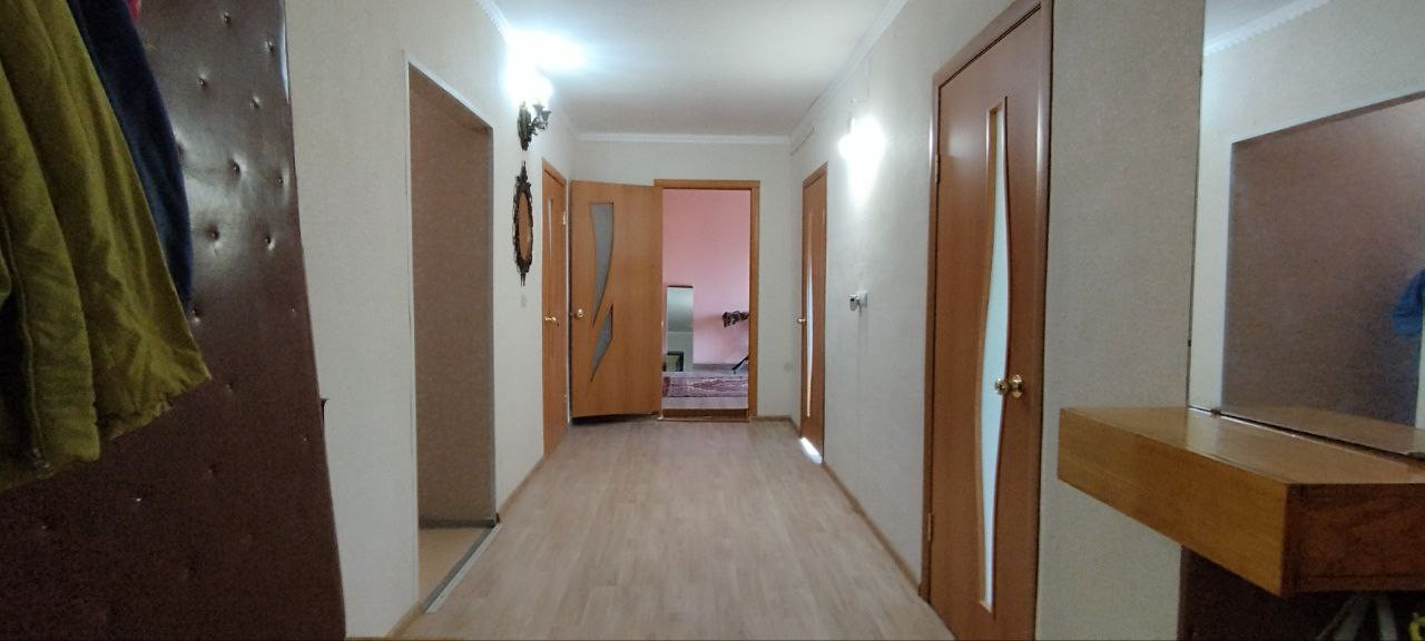 Продаётся кирпичный дом 2004 года постройки общей площадью 105 кв.м. с плодоносящими деревьями и кустарниками. Материал дома - блоки , облицованные кирпичом. Крыша - шифер. Окна - ПВХ. Входные двери - металлические. Большой коридор. Просторная прихожая. Зал. Три спальни. Санузел совмещённый. Гараж. Баня. Инфраструктура развита. Подъезд к дому асфальтированный.