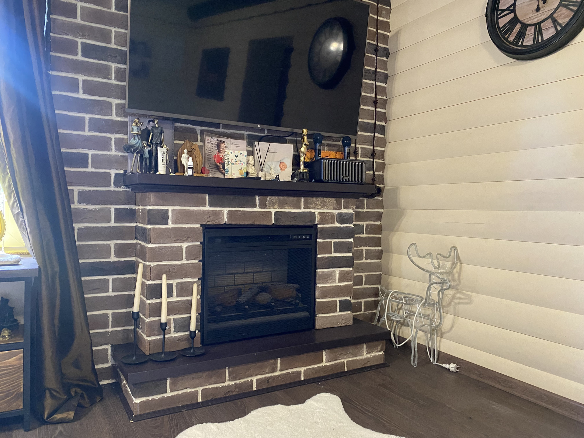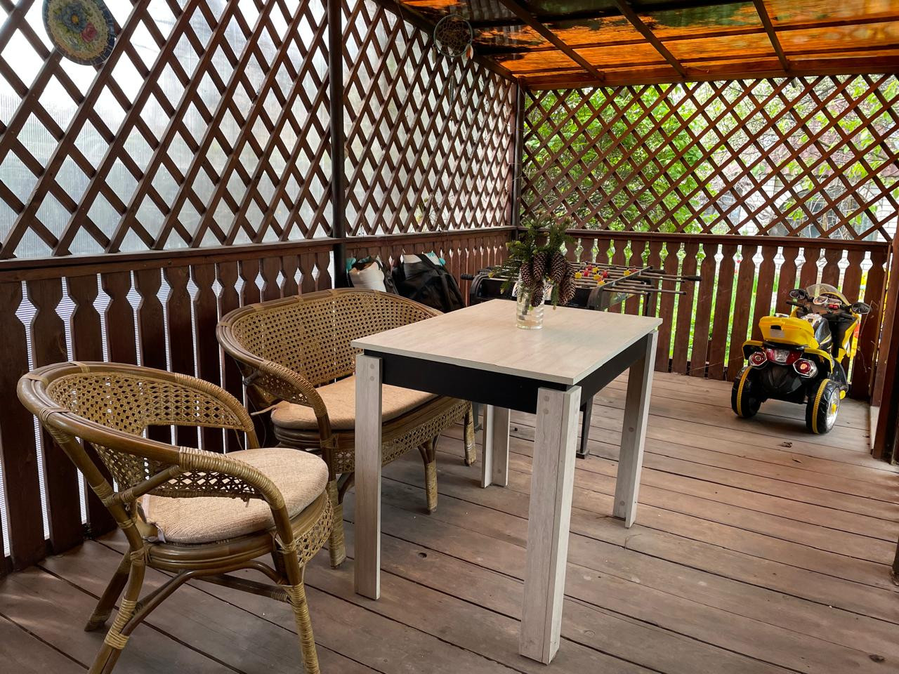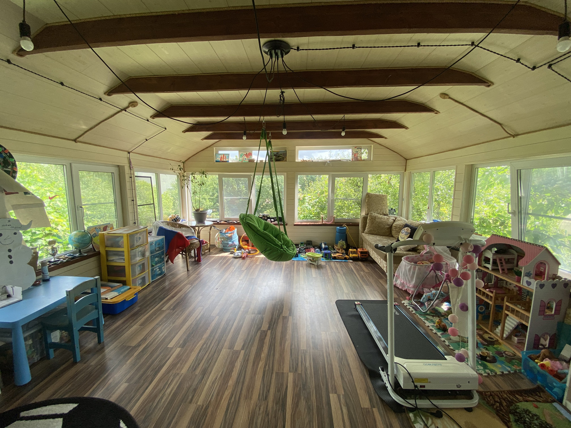 Дом построен из сруба и пеноблоков, обшитый блок-хаусом. В доме гостиная с камином, 3 спальни, два санузла, кухня и терраса для отдыха, имеется комната под газовое оборудование.