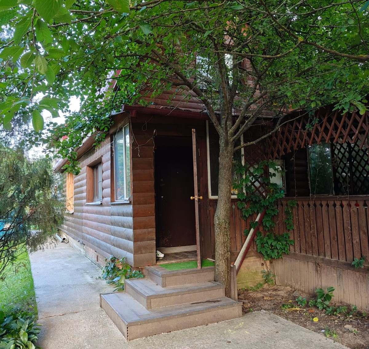 Ухоженный участок 12 соток с хвойными деревьями. Асфальтированный подъезд к дому.