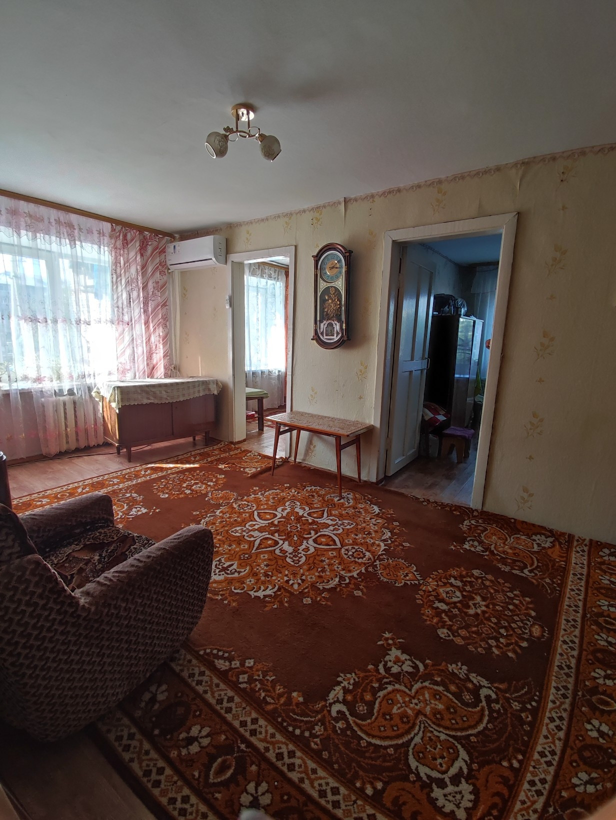 В квартире косметический ремонт ,но вы можете осуществить свои мечты и сделать ремонт "под себя". Большой просторный зал, через него проход в спальни , четвертая комната непроходная. Просторная прихожая. Балкон. Входная железная дверь.