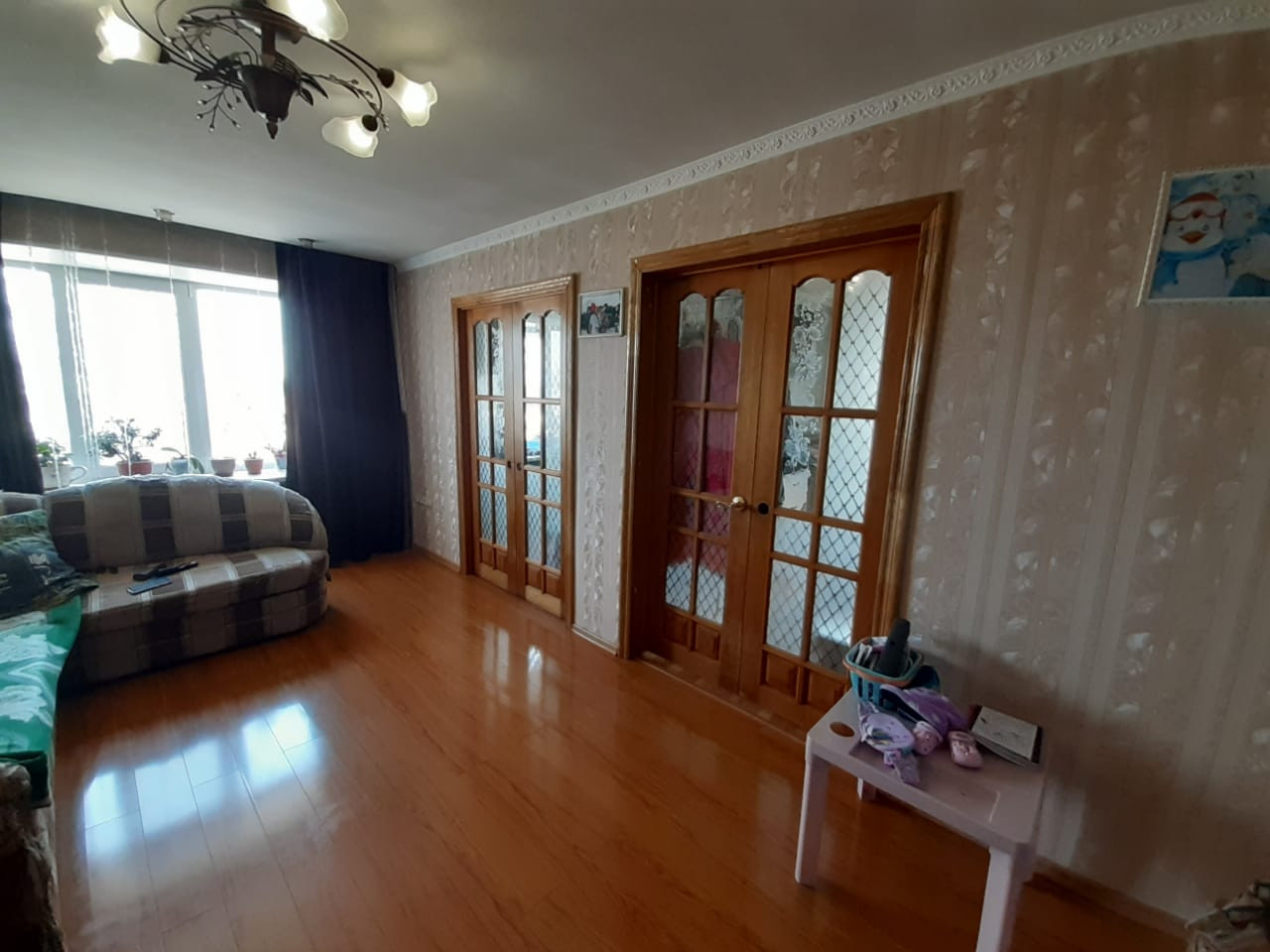 Продается очень светлая, просторная 4-х комнатная квартира с хорошим дизайнерским ремонтом в центре села Покровка. В квартире просторный зал, две комнаты, гостинная, кухня, прихожая, санузел совмещен.